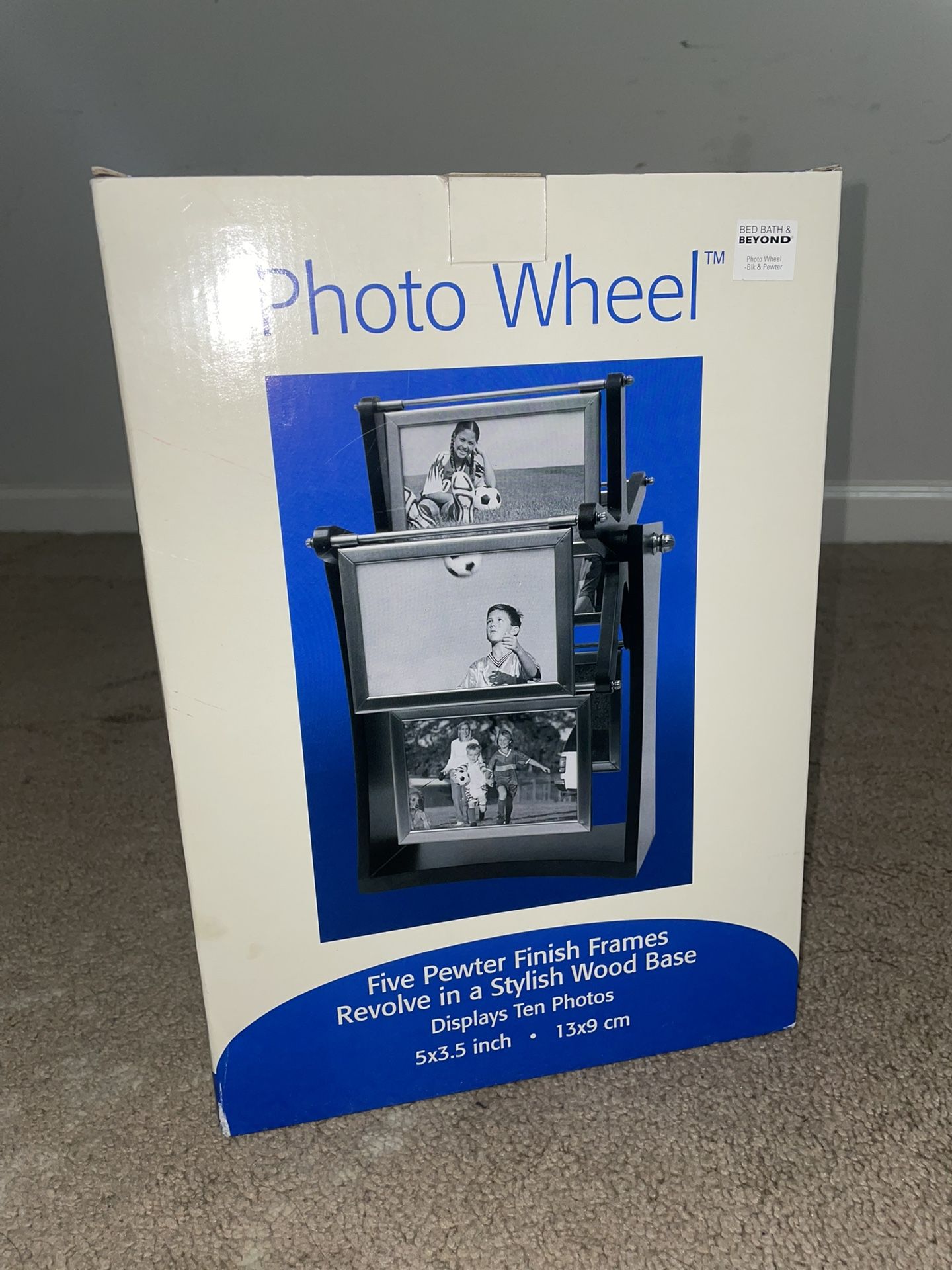 Five (5) Pewter Finish Frames Revolve In A Stylish Wood Base And Display 10 Photos