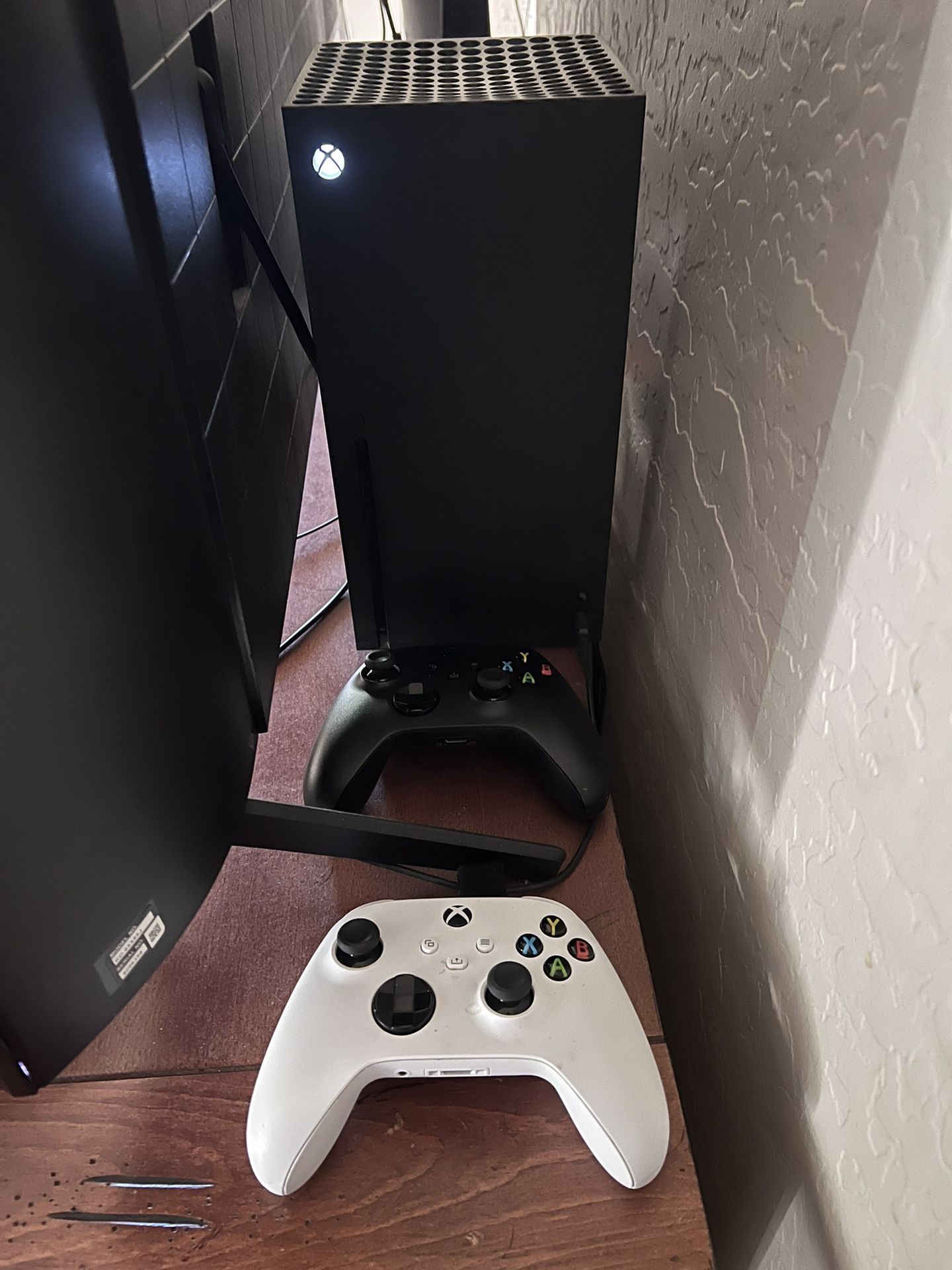 Has 2 rechargeable batteries for controllers 2 controllers Great shape Bought a few months ago (not very old.) Disc drive