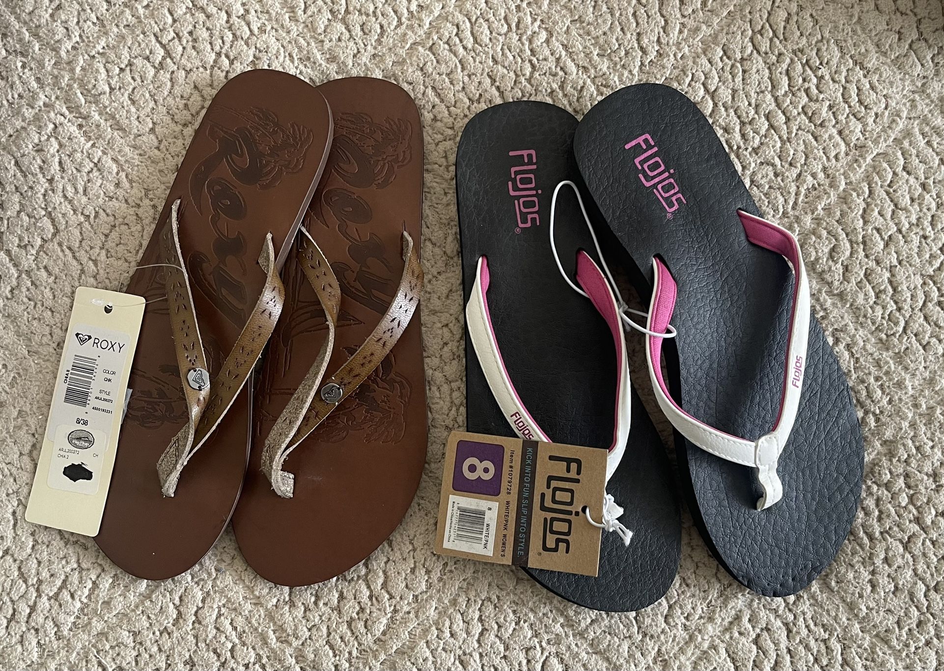 BNWT - Women’s size 8 Flojos & Roxy flip flops