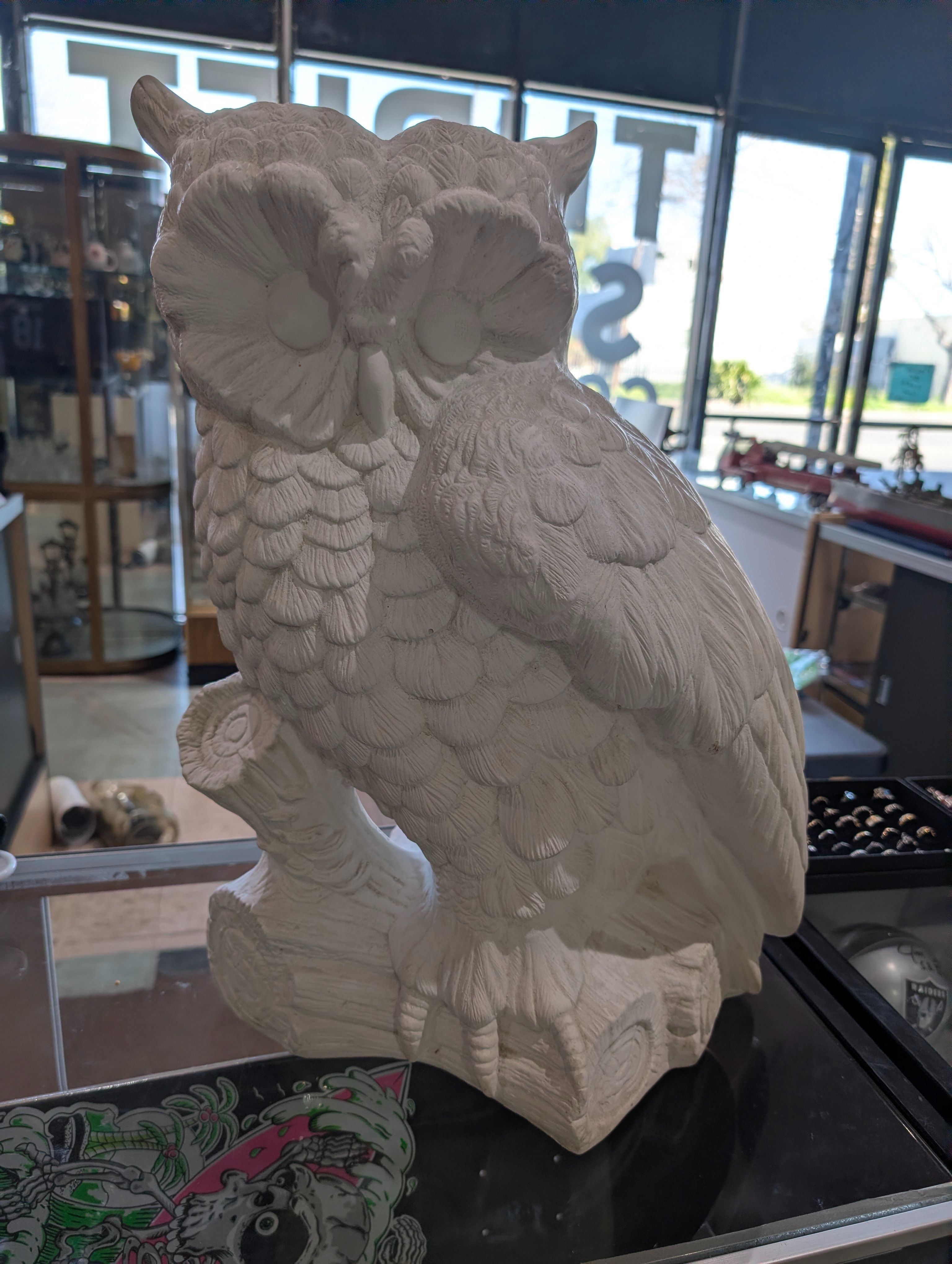 Large white owl garden statue with detailed textured feathers and perched branch base. Rustic farmhouse decor accent for patio, yard or indoor display. Pre-owned with light surface wear. - I'm Located in Stockton I'm Also willing to trade / barter for any of the following: Cellphones Video Game Lots (Nintendo, Super Nintendo, N64, Sega) LEGO Pokemon Items Sports Cards Tools Computers Jewelry (Rings, or Necklaces) Disney Collectibles Vinyl Records Toys (Collectibles, 90s, Games, Vintage) Sports Collectibles Silver Tablets Shelves / Shelving Antiques Arcade / Skill Games Wall Art Chainsaws Landscaping Tools Mancave Items Retail Displays Autograph Items Sculptures / Statues Cast Iron Decor Pottery Yard Art Magazine Lots (LIFE, Sports Illustrated) Historical Items