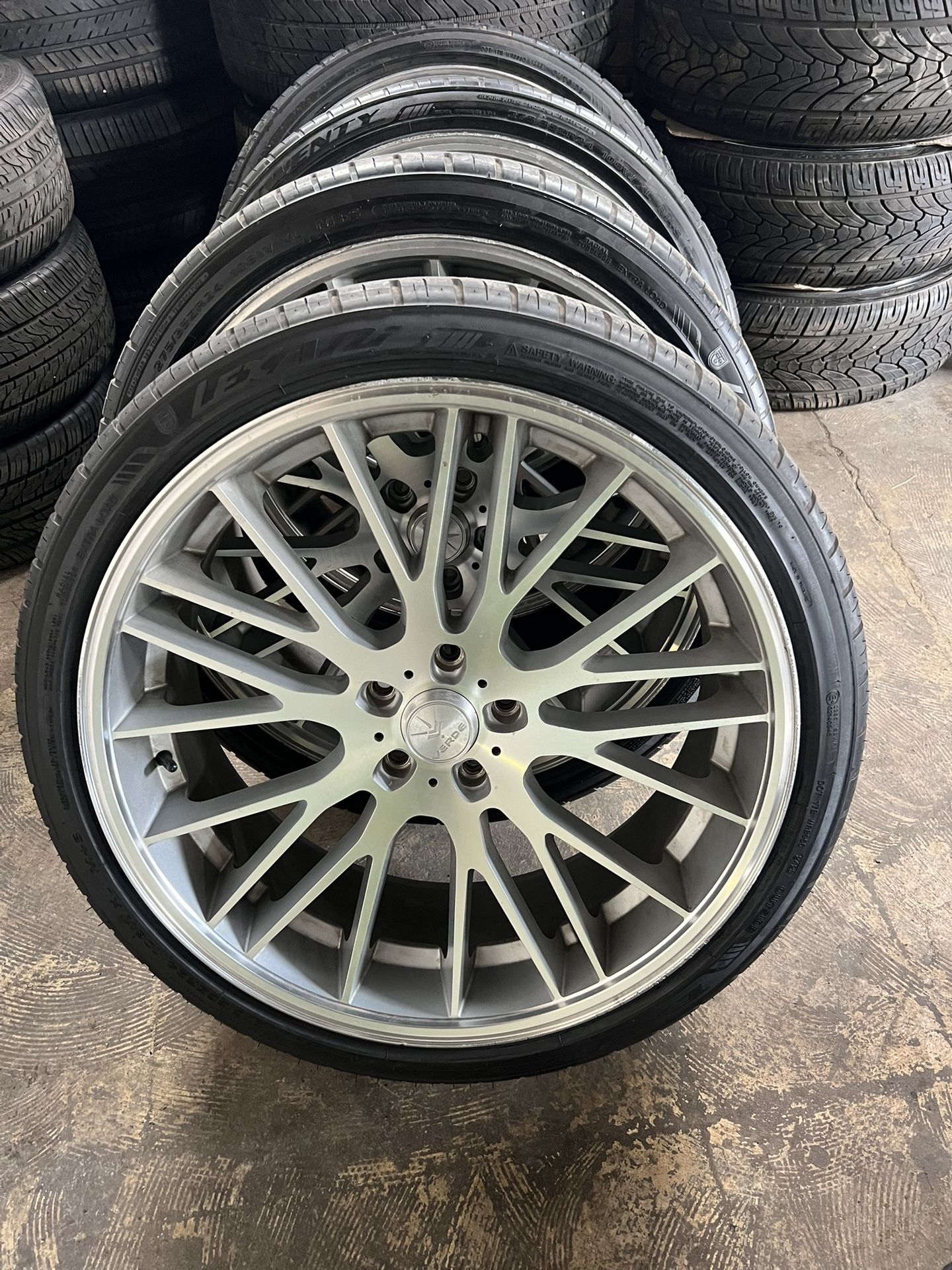 5x130 Audi Q7 Mercedes GWagon G Wagon Porsche Cayenne Cayman Volkswagen Touareg Used wheels. Used tires. 275/35/24 All 4 matching LEXANI tires No welds. No leaks. No repairs needed. Cash only. Zelle only. No installation is available.