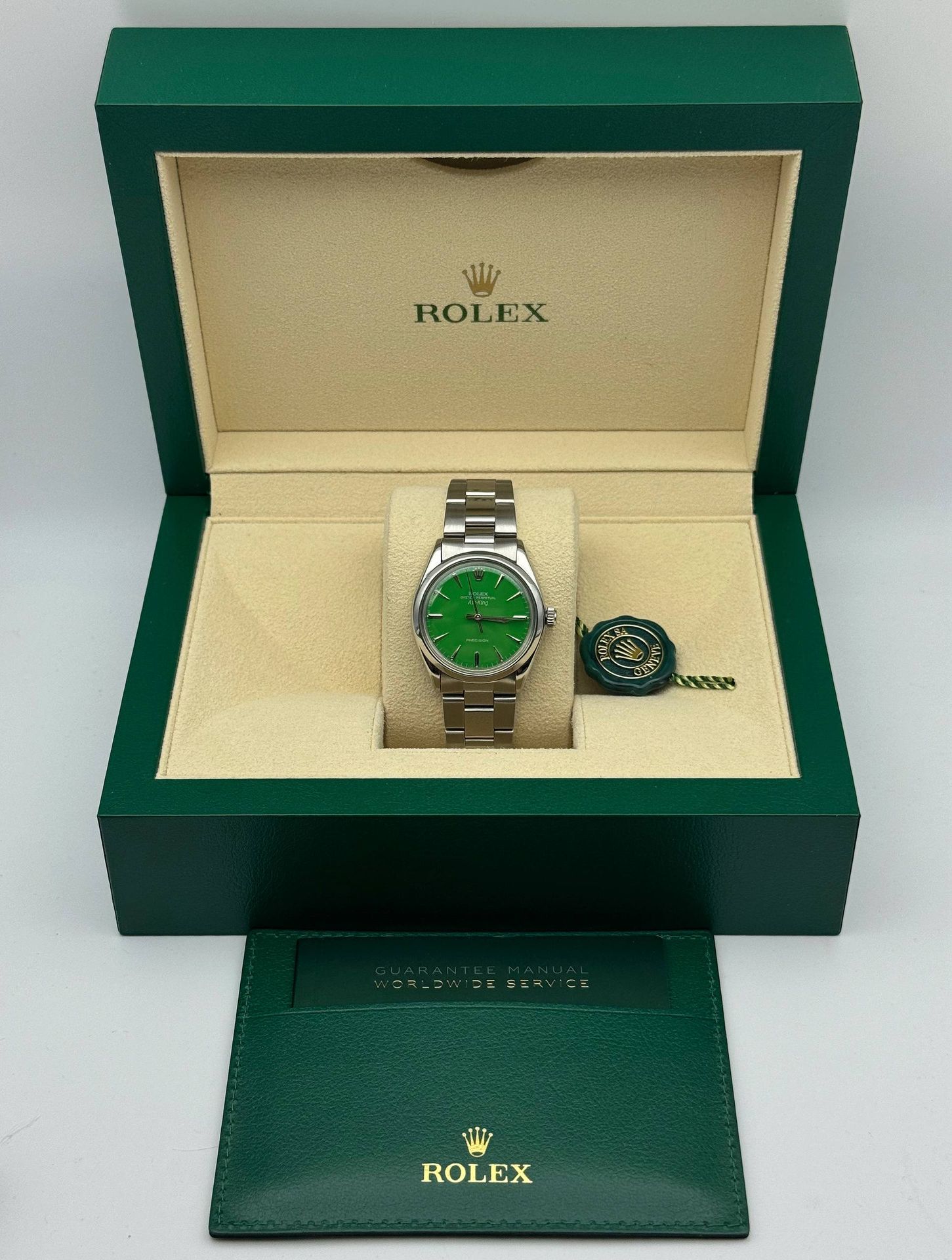 Gorgeous Like New Rolex Oyster Perpetual Air-King 34mm with factory green dial🍋🟩. Smooth bezel stainless oyster bracelet‼️🔥 Model: 5500 Year: 1981 👑 Comes with box, booklet, tag, appraisal. 😎Everything you see in the photo. 🎁💯 The best choice for you 😎 We buy Rolex and Audemars, patek . Do layaway in VIP SHOP Coral Springs 🔥💎💸 We buy gold, diamonds, silver, coins 🥳🔥