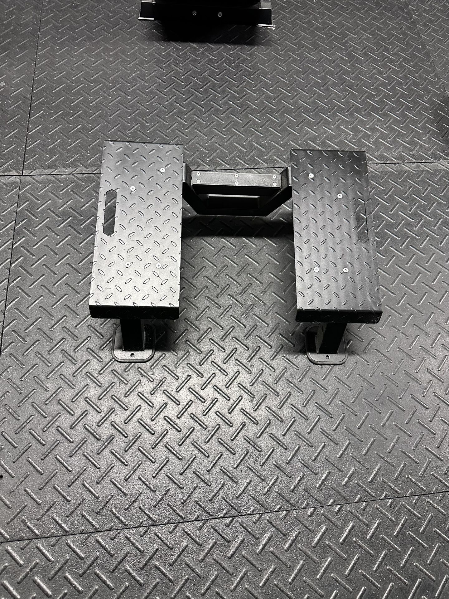 Heavy-duty pedestal step-up stand made from thick steel with diamond-plate platforms. Extremely stable and built for commercial gym use. Perfect for: • Step-ups • Bulgarian split squats • Single-leg work • Plyometrics • Functional training ✔ Commercial-grade steel ✔ Non-slip diamond plate ✔ Very stable – no wobble ✔ Used in a private training gym ✔ Cosmetic wear only, fully functional 📍 Pickup only – Miami 💬 Message if interested