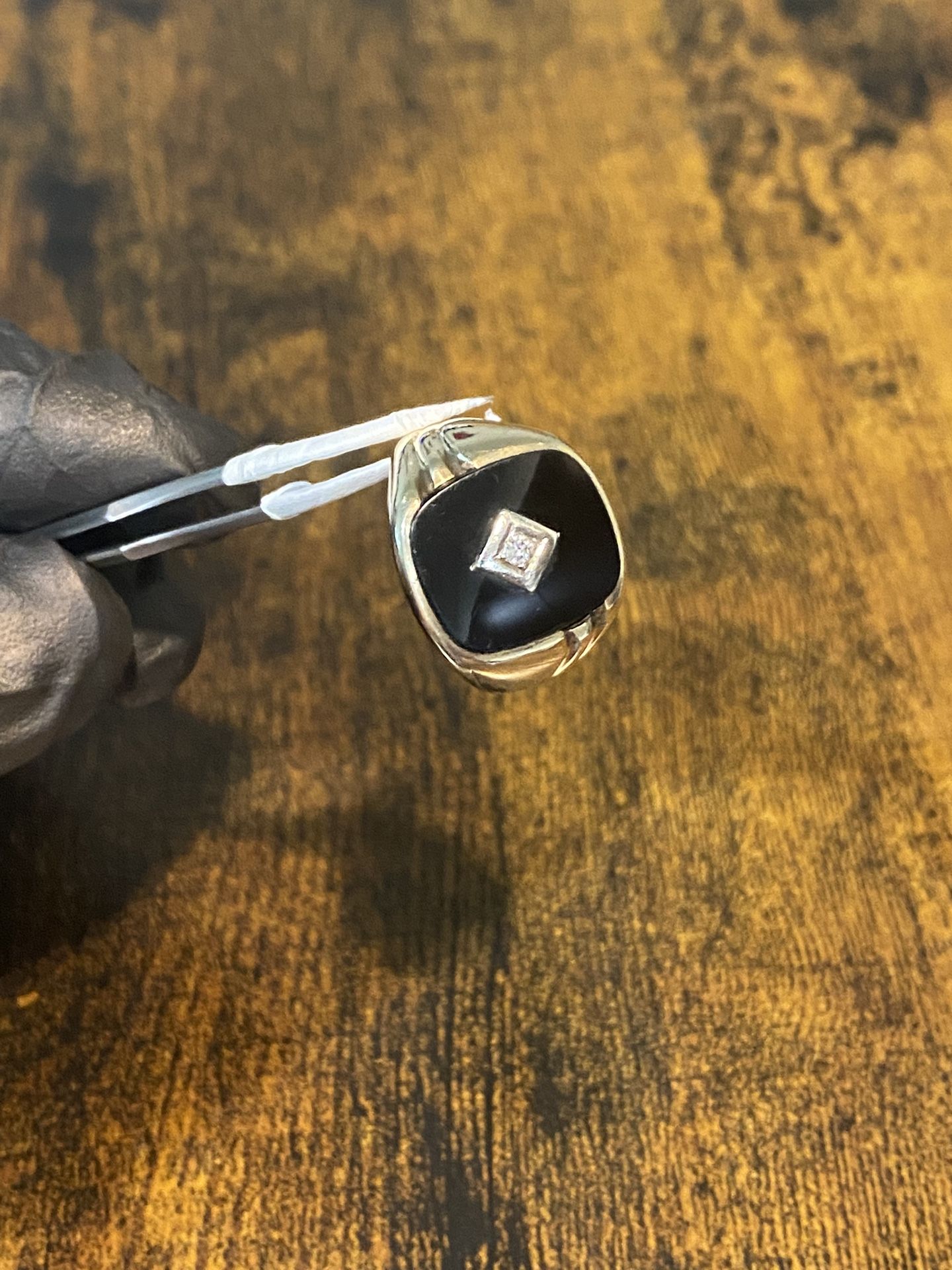 Weight 10.49 grams. Ring Size 10 Resco 10K Inner Signed Diamond Centered. Gold 10k 14k 18k 24k silver .999 .925 diamonds diamond gemstones Gucci Versace designer opal gem sapphire ruby gemstone necklace bracelet