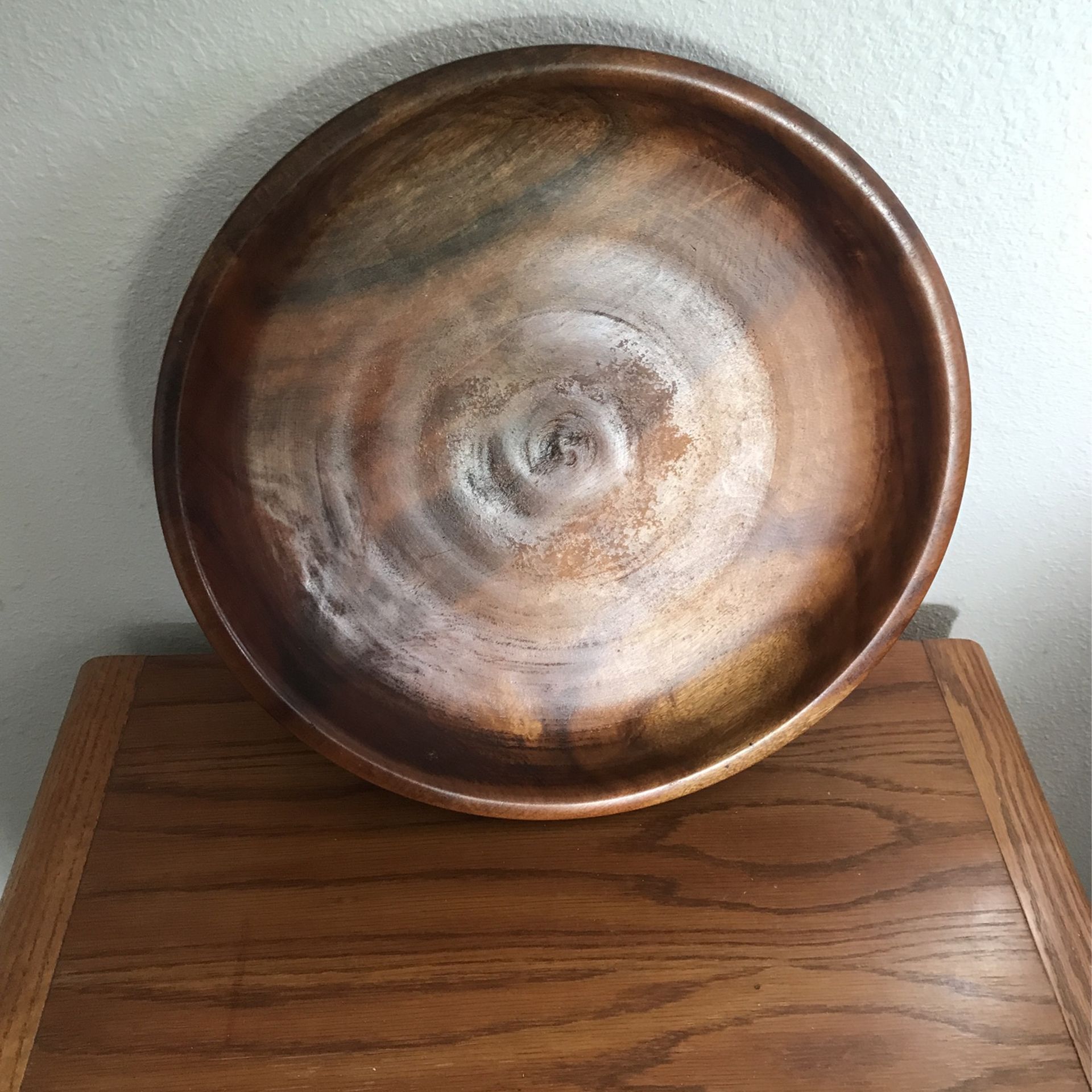 Oregon myrtle, 17/1/2 diameter, 3/1/4 in high. Stunning chocolate figure bowl. This a generational piece