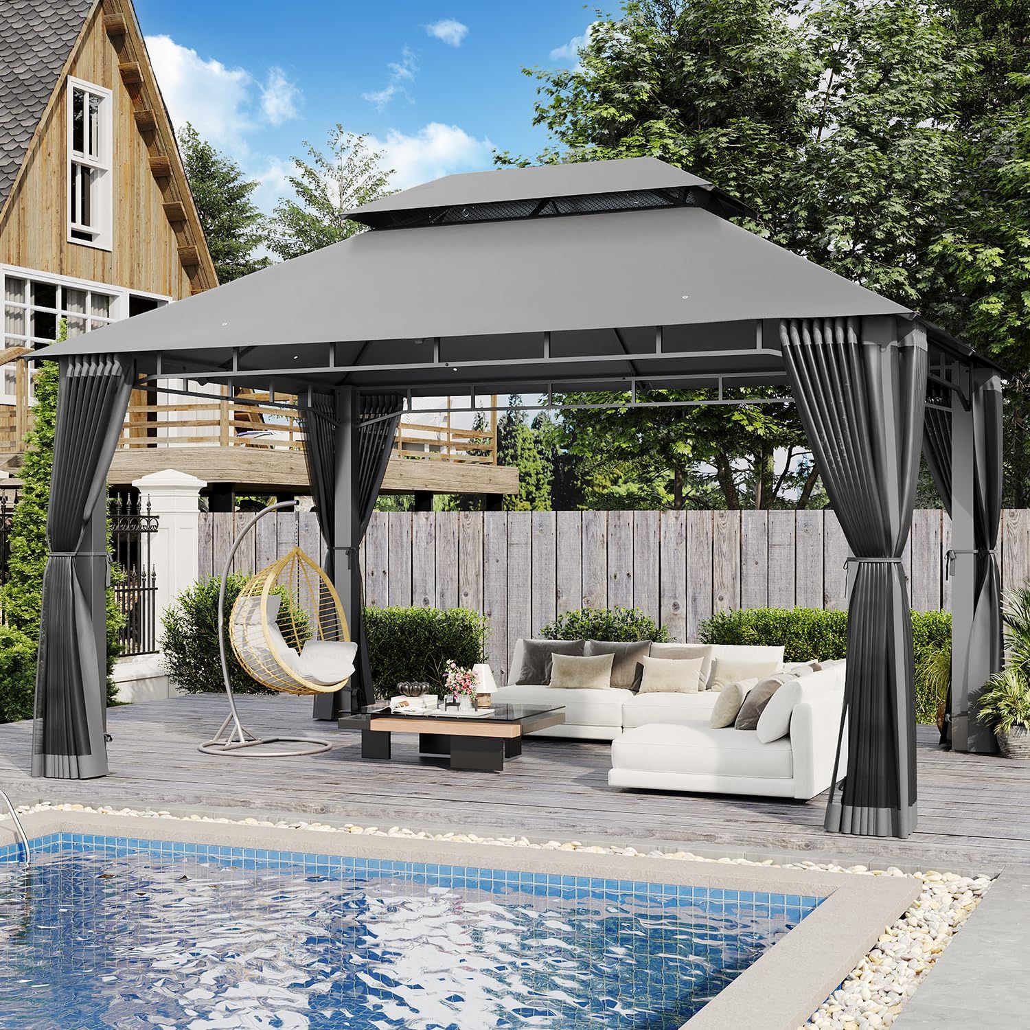 Outdoor Gazebo for Patio 10x13, Metal Frame Canopy with Double Roofs, Heavy Duty Party Tent and Shelter with Mosquito Nettings for Backyard, Lawn, Gar