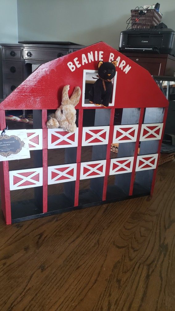 This is the cutest barn ever! Handmade and signed by artist. Holds 16 or more Beanie Babies for display or playtime fun! One of a kind