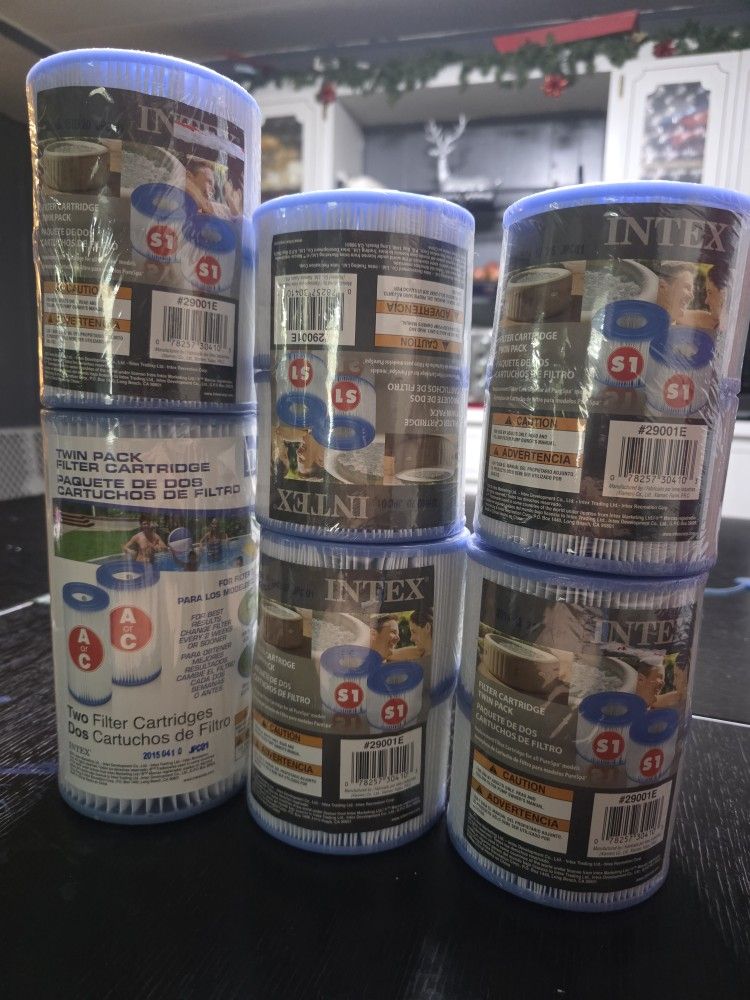 One filter cartridge large And 5little ones intex small My ten year old son is trying to save up for a Xbox please buy,support 60$ for all
