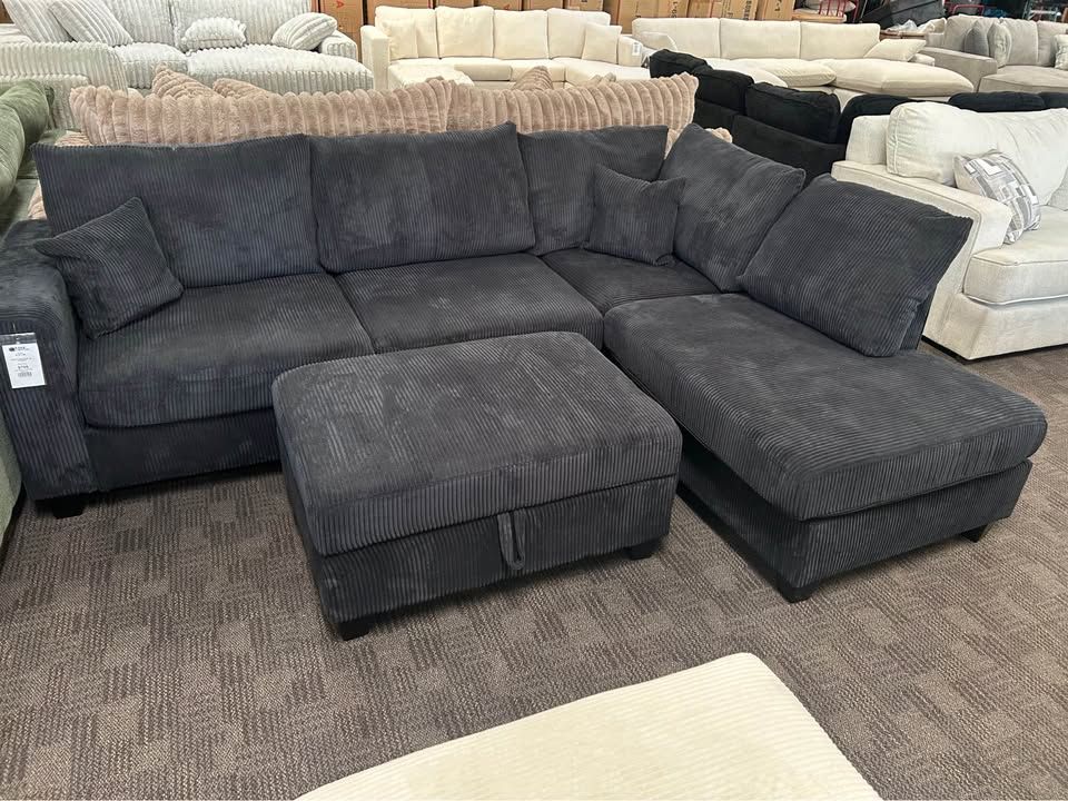 Brand new! Available in stock for quick pick up or delivery! 105" x 75" Ask about other sizes and colors! Stain-resistant fabric. Throw pillows included. No credit check, easy payment options! NO MONEY DOWN!