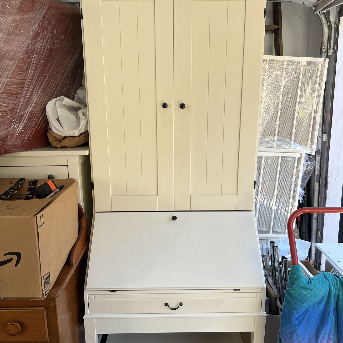FREE IF YOU COME GET IT Sturdy cabinet with pull out keyboard compartment with storage for a monitor and keyboard My original plan was to use the top section as a pantry, middle section for kitchen equipment thats used less often, and bottom shelf for crockpot/cast iron pans. Breaks down into two sections for transport Will help load. Will NOT deliver. I am available 4pm-8pm near Mills College in Oakland