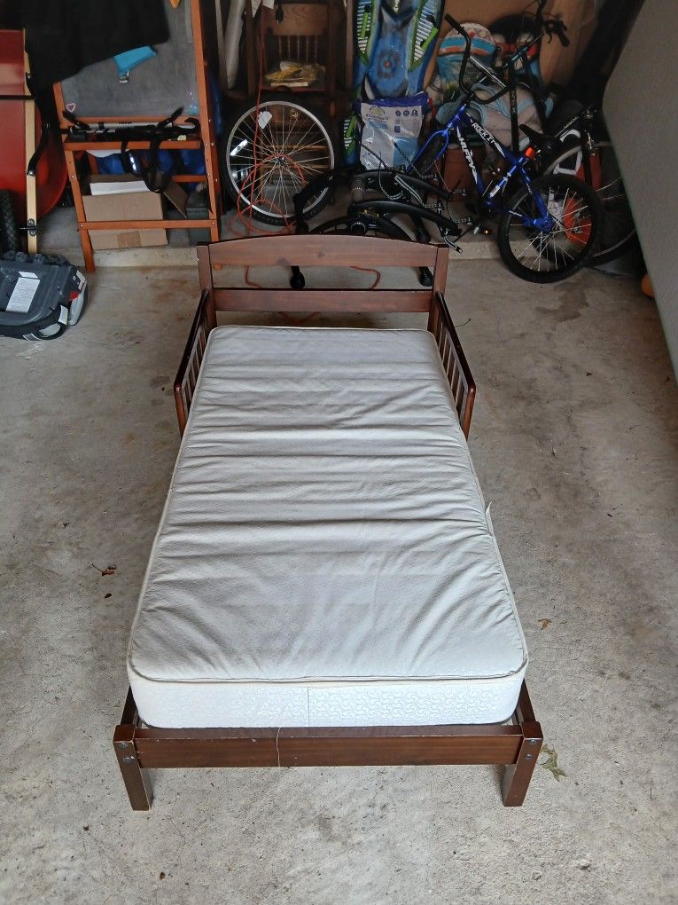 Includes mattress, mattress cover, 3 sheets. Grandson outgrew