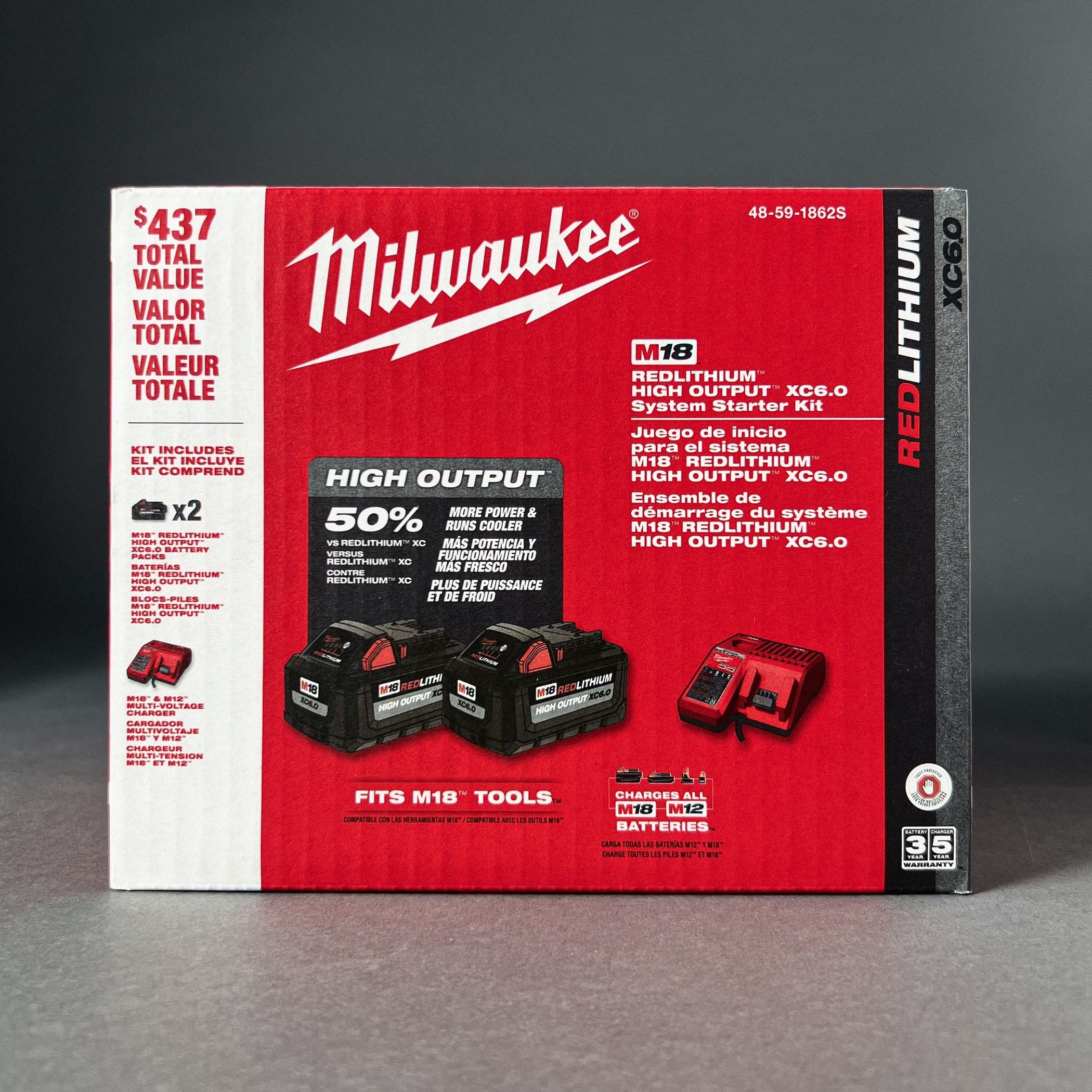 Milwaukee M18 XC6.0 REDLITHIUM HIGH OUTPUT Battery 2-Pack with Charger Starter Kit, 48-59-1862S