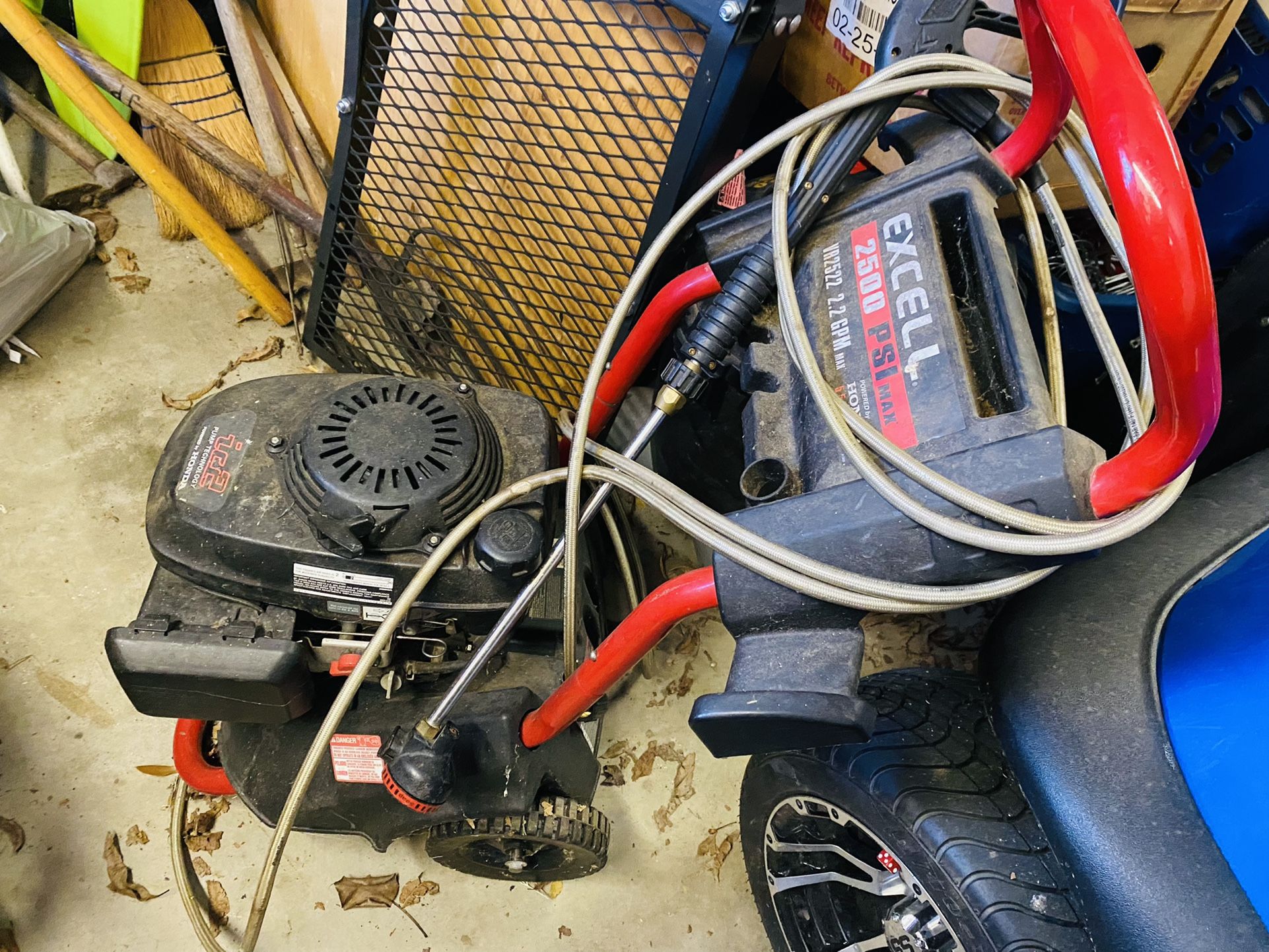 Excell pressure washer 2500 VR2522 powered by Honda Heavy duty with wand and hose rims great motor strong needs water pump.still works.for it to run 💯 replace water pump. Open to offers