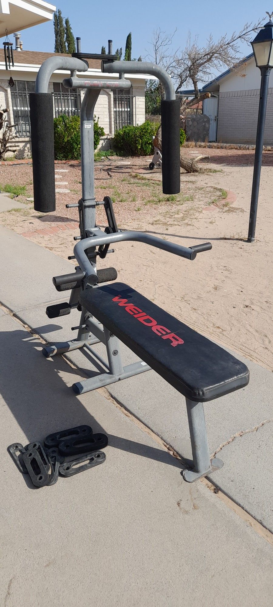 Selling this workout bench with rubber weights.I am only asking $80 great for working out without the weight, get it
