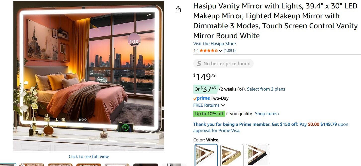 39.4 x 30 inch LED Makeup mirror New doesn’t fit on the dresser