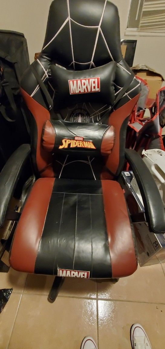 Spiderman gaming chair and punching bag 70 each Chair is broken, it will recline if you put pressure on the back rest