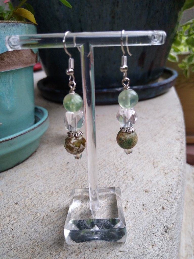 Handmade Natural Agate - Flourite - Crystal - Glass Bead Earrings! Very lightweight, stainless steel, that can be worn everyday! Be sure to remove at night, and when you shower, to care for your jewelry. Cash only if picked up in Brighton, CO. Check out my other listings!
