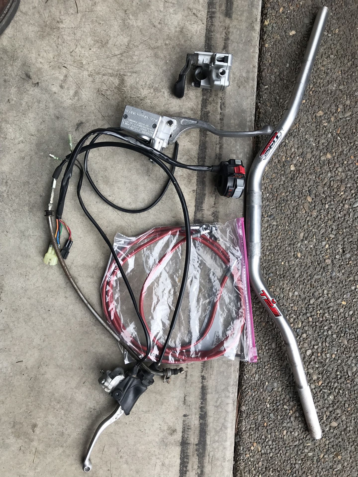 Yfz450 Tag metal handlebars $40 throttle $25 Steel braided brake lines +2. $40 levers $40 Headlight start button switch $30 All parts came of 2005 yfz450 Prices are firm. Pick up in Vancouver