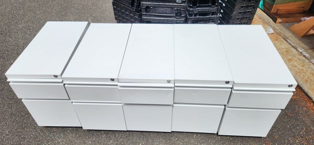 New unused white 2 drawer locking filing cabinets that come with the keys and they have roller wheels on the bottom i have about 10 of them for sale. These retail for 250 each on the companies website. I'm charging 60 each