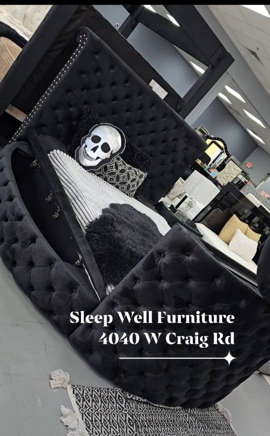 Elegant bed frame with built-in power fireplace and TV pop-up console Starting 👉👉$1299 Available in king Black or gray 🙋♂️👉SLEEP WELL FURNITURE 4040 W CRAIG RD LAS VEGAS Open 10-7pm Hablamos Español 👉We offer Financing💲 Take home it Home 👉$50 DOWN No credit required, Zero interest up to 120 days Select from Koalofi, Acima, American First, Progressive finance. Furniture Sectional Sofa Queen King Mattress Bedroom Bunk beds