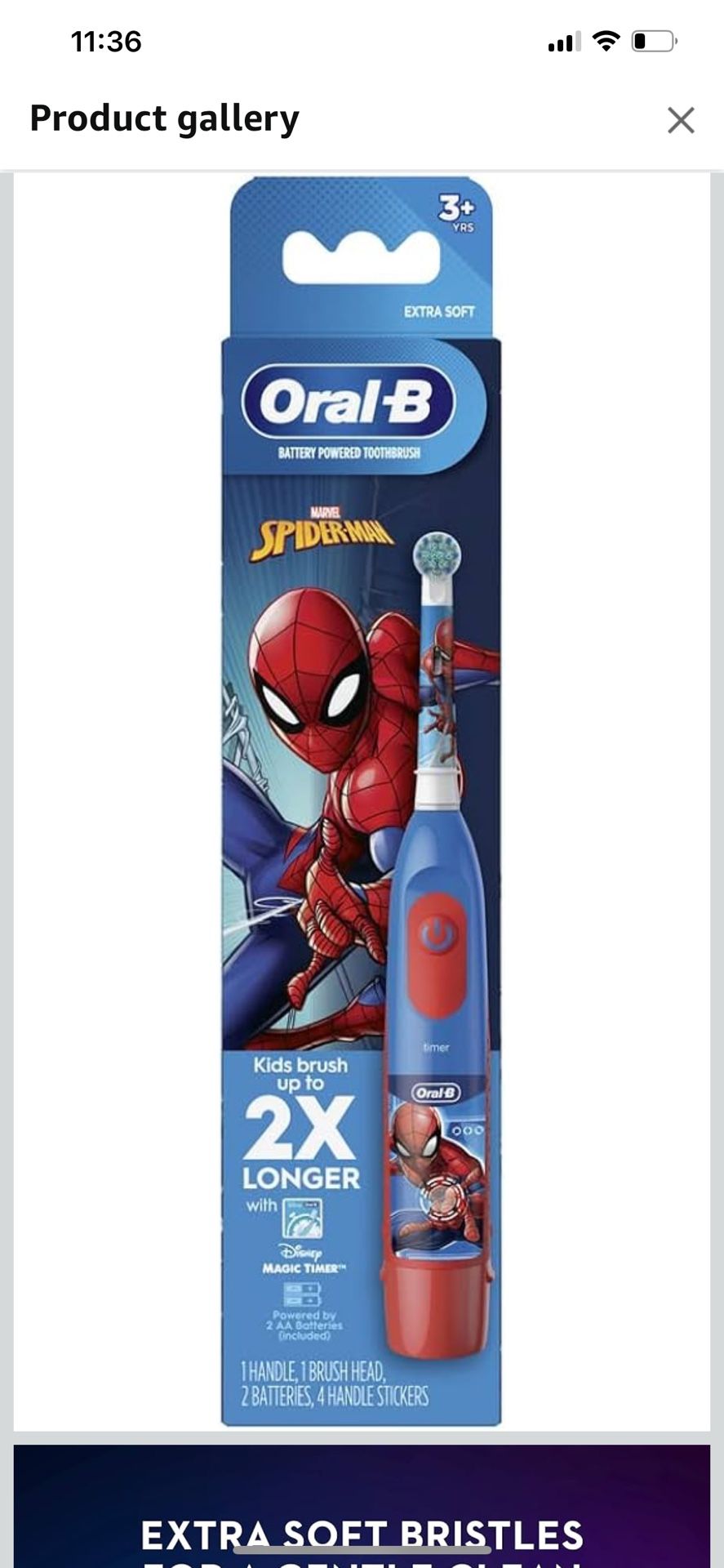 Oral-B Kid's Battery Toothbrush Featuring Marvel's Spiderman, Soft Bristles, Replaceable Brush Head, for Kids 3+