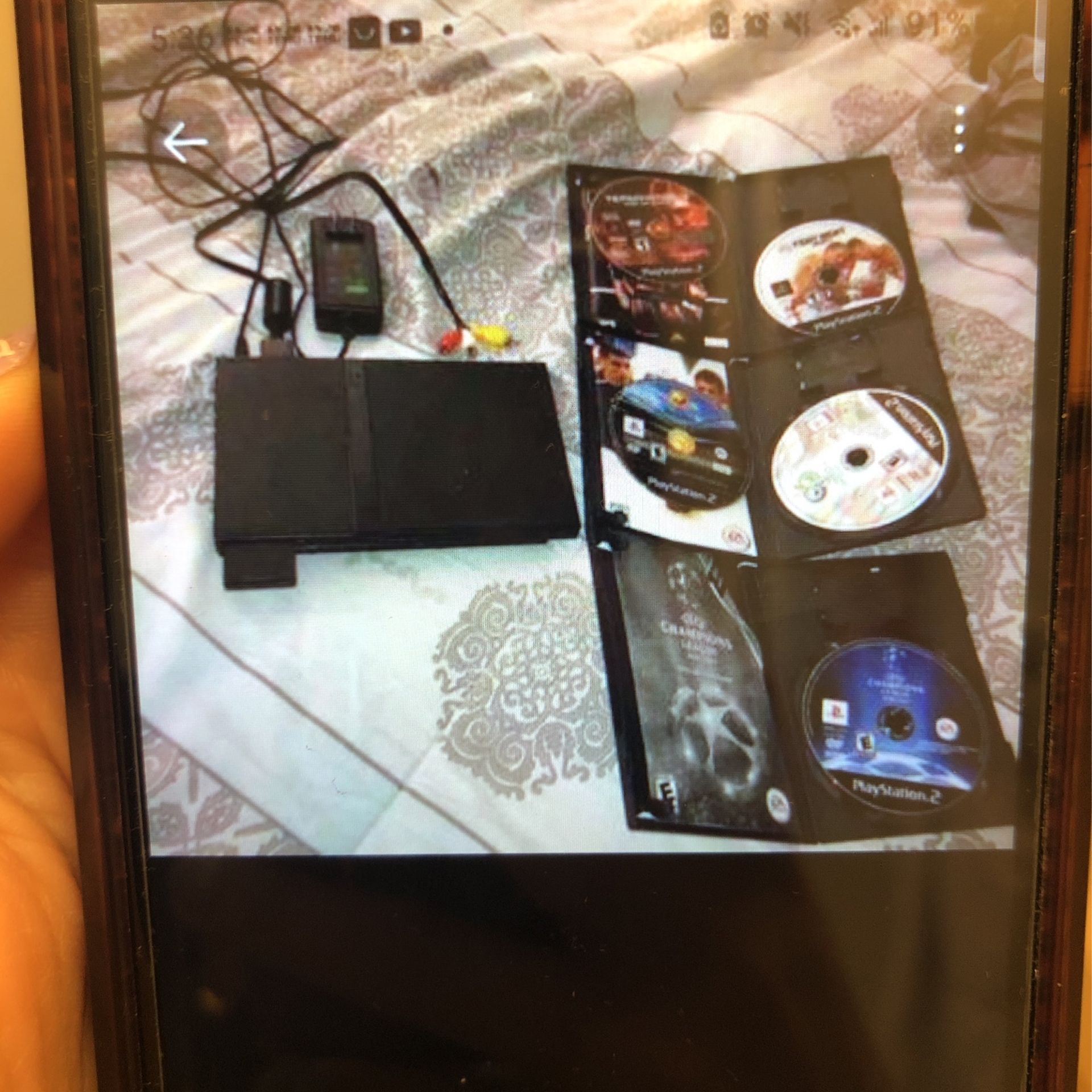 Ps2 with games 5 , soccer fifa, fight night,terminator,etc Comes w cables no controllers