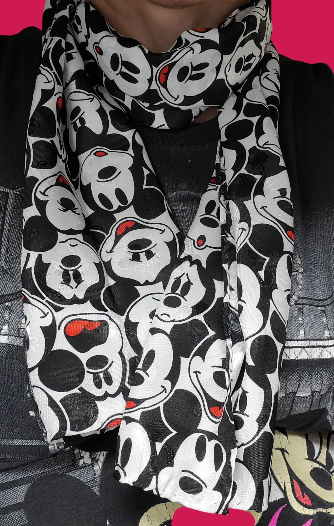 NWOT Disney Honey Fashions LTD NY Mickey & Co 54" Black/White Faces Scarf