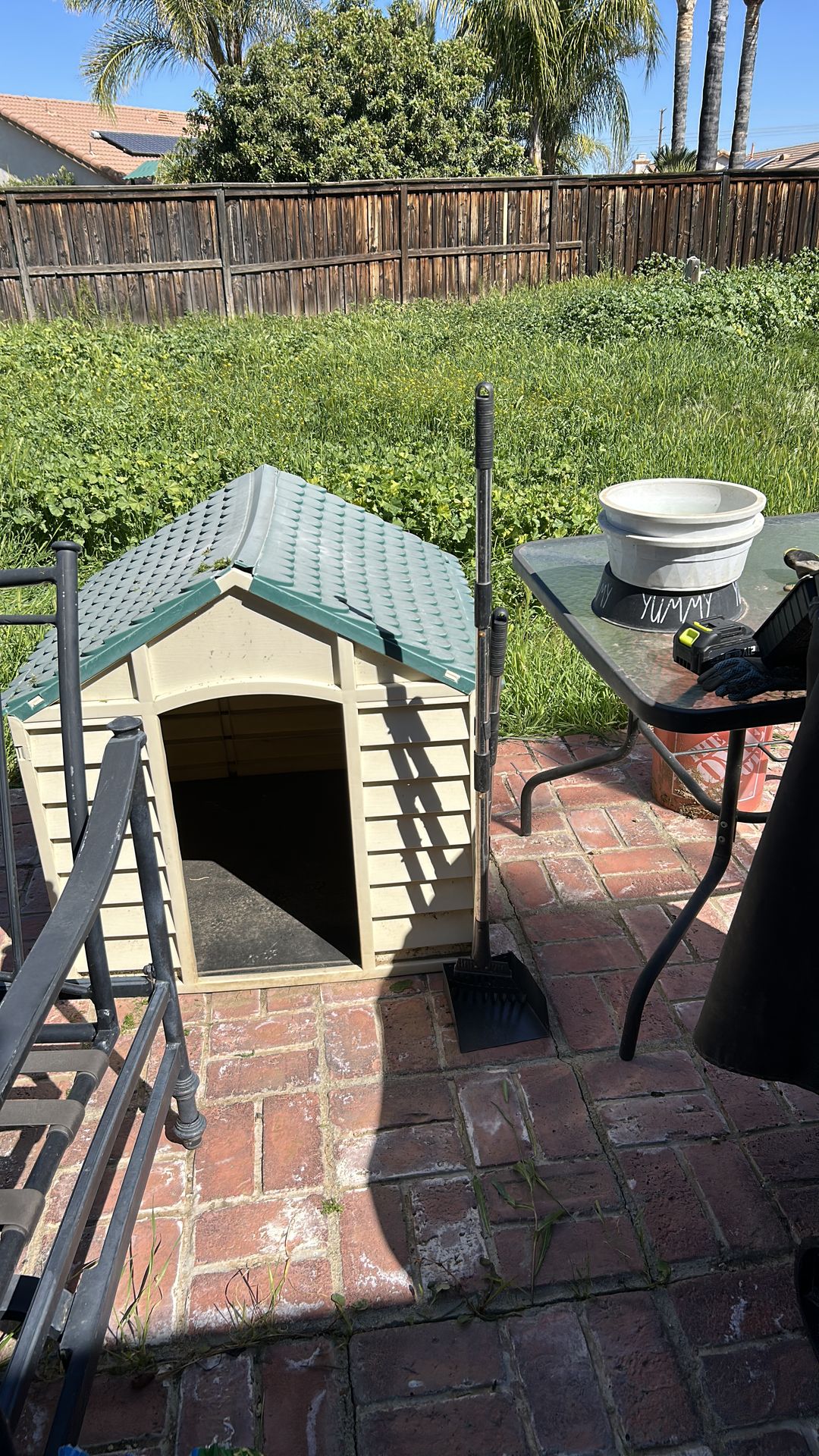 Dog house/dog bowls/pooper scooper