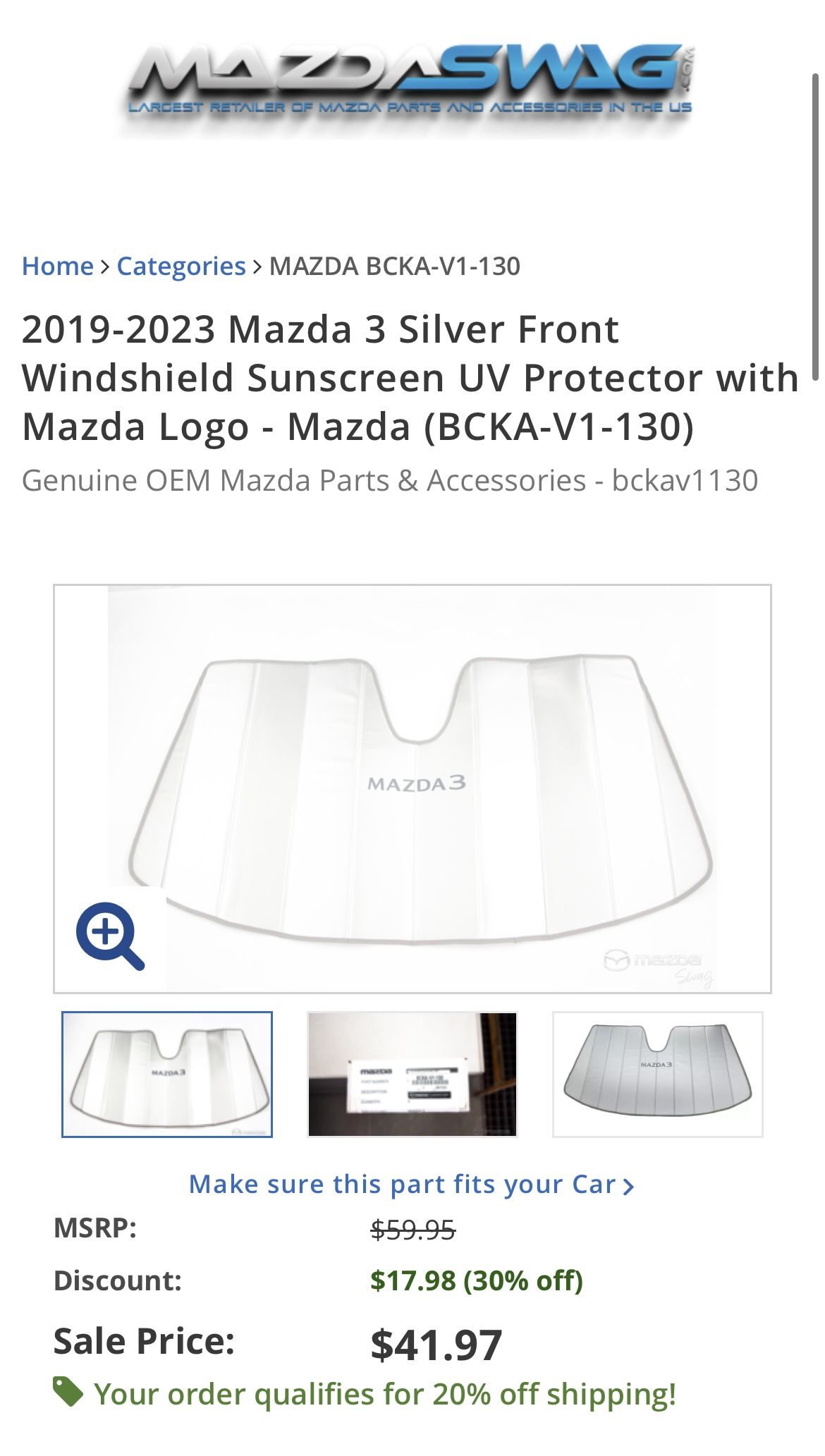 2019-2026 Mazda 3 Silver Front Windshield Sunscreen UV Protector with Mazda Logo - Mazda (BCKA-V1-130) $35 OBO