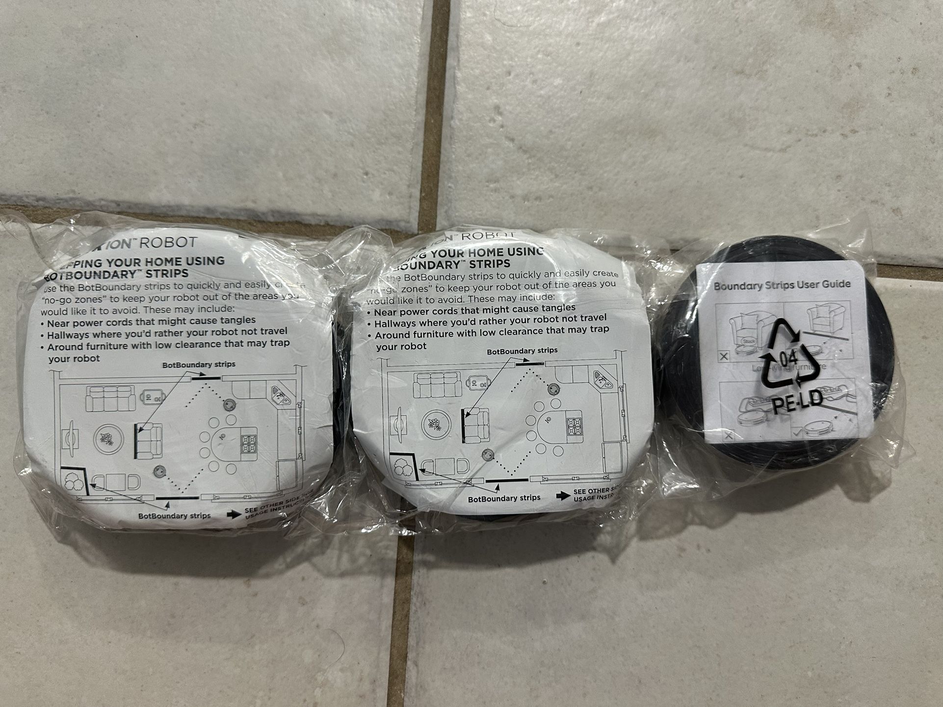 $25 or best offer for 3 new, unused robot vacuum boundary strips (still sealed). Used to block off areas for robot vacuums. One roll is shorter than the other two rolls.