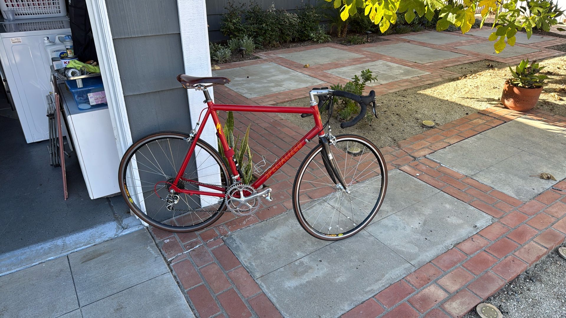 1995 specialized M2 road bike. Campagnolo 10-speed record drivetrain. Shimano Dura-Ace brakes Campagnolo Record hubs Mavic CXP 33 rims