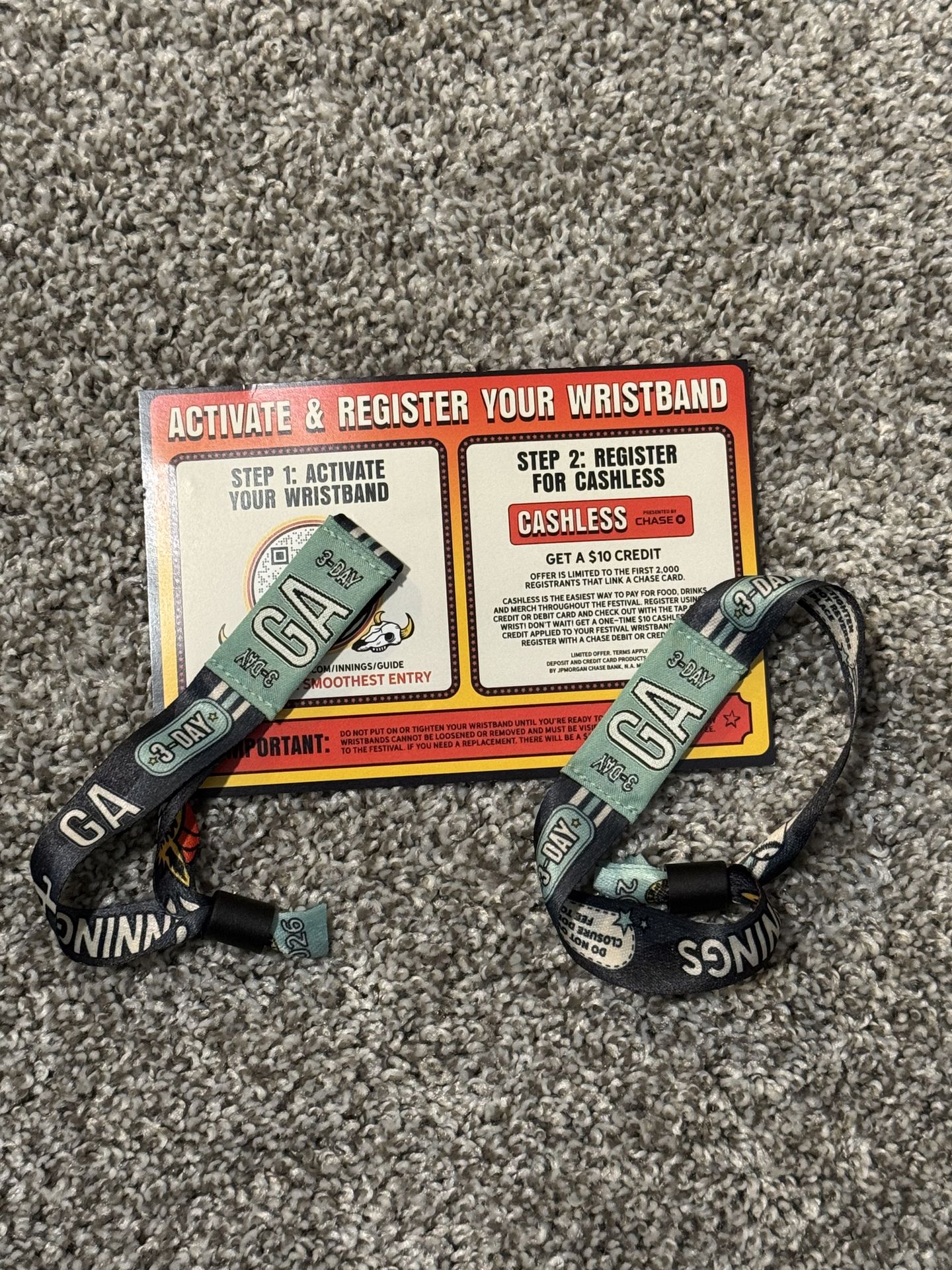 2 General Admission 3 day passes for Innings Festival 2026 (Feb. 20,21,22,). Physical wristbands pickup in Irvine or nearby.