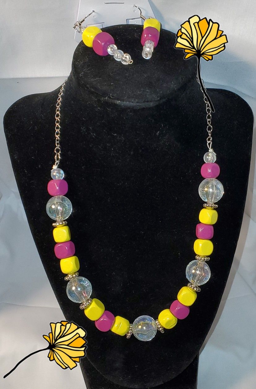 A wooden, yellow and pink squares; with a plastic round twinkle clear set.