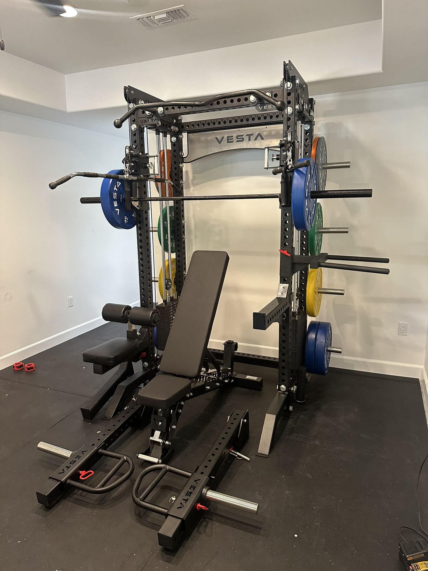 🏋🏽 Vesta Pro Series Ultimate Rack 2-1 Functional Trainer🏋🏽 Includes Gym Equipment w/Weights! Let Me Help You Create Your Home Gym! 🚨 AVAILABLE COLORS 🚨 CLEAR COAT / BLACK / RED / WHITE ➡️FREE DELIVERY at FULL PRICE ⬅️ •INSTALLATION IS AVAILABLE• •CREDIT & FINANCING AVAILABLE; •BUY NOW, PAY MONTHLY• ask for more info New In Box! FREE DELIVERY AT FULL PRICE!Click Profile For More Gym Listings! Only Account! Cash / Credit Cards / Venmo / Finance Available! ➡️➡️MAKE IT A BUNDLE ⬅️⬅️ W/ AB3000 / 260 BUMPERS / 7Ft Barbell $3499 🚨 BUNDLE W/ATTACHMENTS🚨 $4149 Prepare to be blown away by the astonishing versatility of our 3-IN-1 Machine - it’s not just a piece of equipment, it’s a game-changer. After extensive research, development, and rigorous testing of multiple prototypes, we’ve achieved perfection with our ultimate all-in-one machine - the best combination of a Half Rack, Functional Trainer, and Smith Machine. All our Pro Series products have laser cut numbering with 1-inch hole, 3”x3” frame with commercial 11-gauge steel and massive 1-inch hardwares. Tested and approved by multiple gym owners and personal trainers in our Los Angeles Showroom, this masterpiece is engineered to surpass expectations and built to endure, and set to redefine your fitness journey. MEASUREMENTS Height: 94" bottom to top of pulley Width: 80" total width, from end of the smith bar to the other end Length: 65" from foot extension to barbell holder in the back FEATURES 160lb x2 weight stacks 33 height settings 2:1 Pulley Ratio Olympic Smith Barbell 45lb, 700lbs, with bearings Premium Aluminum pulley wheels Commercial grade cables J-Cups, Spotter Arms, and Barbell holder are all INCLUDED D-Handles is INCLUDED We also have available to buy: GYM EQUIPMENT OLYMPIC STANDARD WEIGHTS WEIGHT PESAS SQUAT RACK POWER CAGE SMITH MACHINE BENCH PRESS INCLINE DECLINE BARBELL HEX BAR REP FITNESS RUBBER BUMPER PLATES ADJUSTABLE BENCH FLAT BENCH WORKOUT BENCH DUMBBELLS DUMBELL ADJUSTABLE DUMBBELLS KETTLE BELLS DIP ATTACHMENT PULL DOWN BOWFLEX ROWER 230LB WEIGHT SET SQUAT RACK HALF RACK RUBBER HEX DUMBBELLS OLYMPIC CAST IRON CAST IRON WEIGHT PLATES WOMENS BARBELL URETHANE BUMPER PLATES 45 LB PLATE 45 LB BUMPER PLATES CAST IRON WEIGHT STEEL WEIGHT PLATES FLECK PLATE LANDMINE ATTACHMENT CALIBRATED WEIGHT PLATE ECHO PLATE WALL MOUNT RACK ROGUE MONSTER LITE POWER RACK WALL MOUNTED SQUAT RACK OLYMPIC BARBELL CERAKOTE BARBELL ROGUE BARBELL OHIO BARBELL FUNCTIONAL TRAINER LEG PRESS HACK SQUAT LEVER ARMS RACK ATTACHMENT POWER BLOCKS GHD BELT SQUAT
