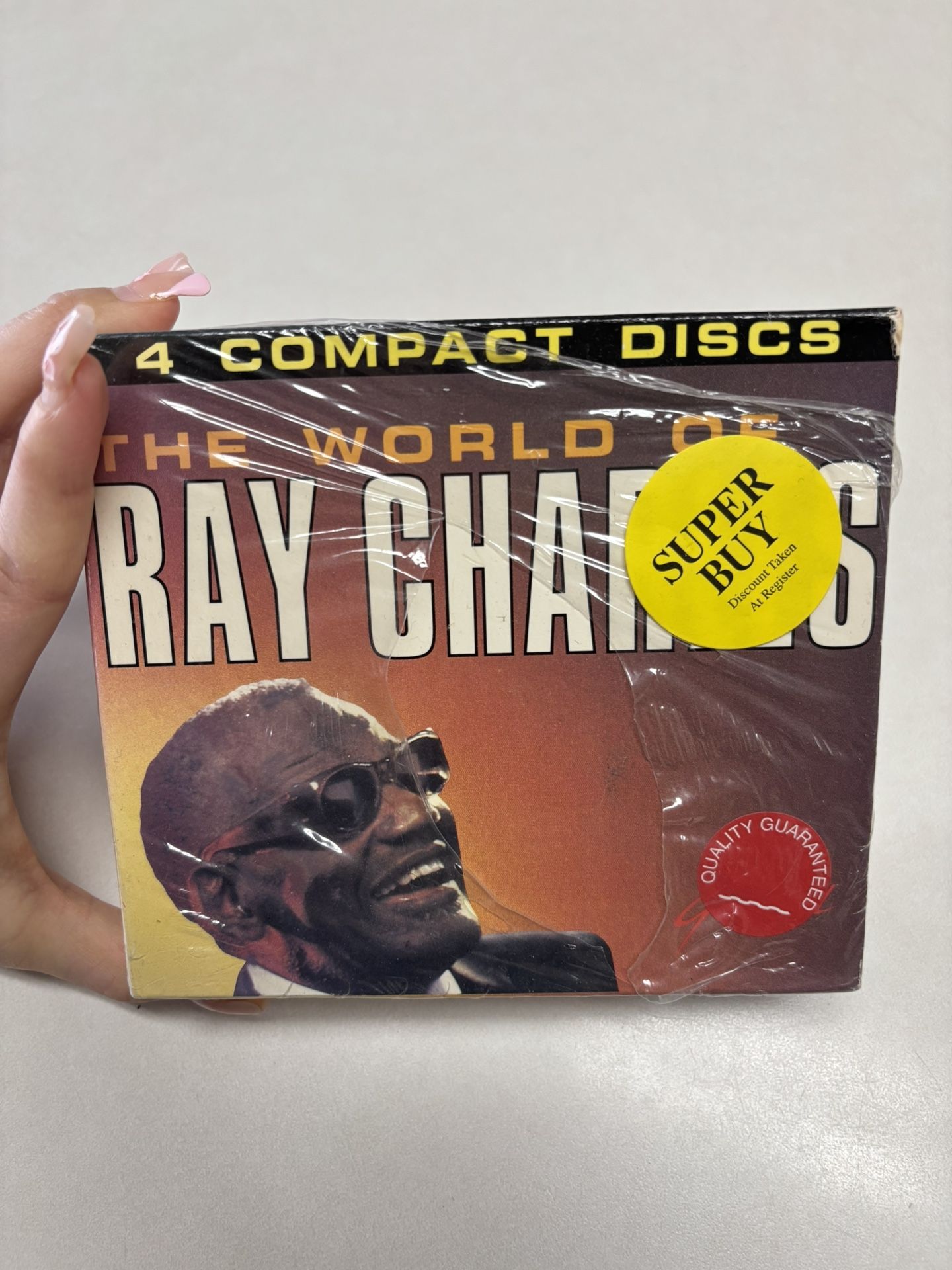 This item is The World of Ray Charles, a 4-compact disc box set released in 1993. Item Type: Music Box Set (Collectibles) Artist: Ray Charles Format: 4 CDs Release Year: 1993 Genre: Soul, Rhythm & Blues, Piano Blues