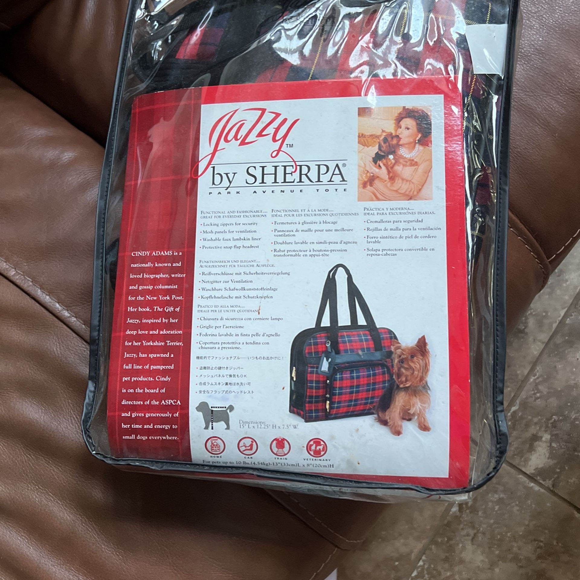 Sherpa dog carrier tote is approved by veterinarian Great bag with mesh panels for ventilation Locking zipper for security Washable lamp skin liner