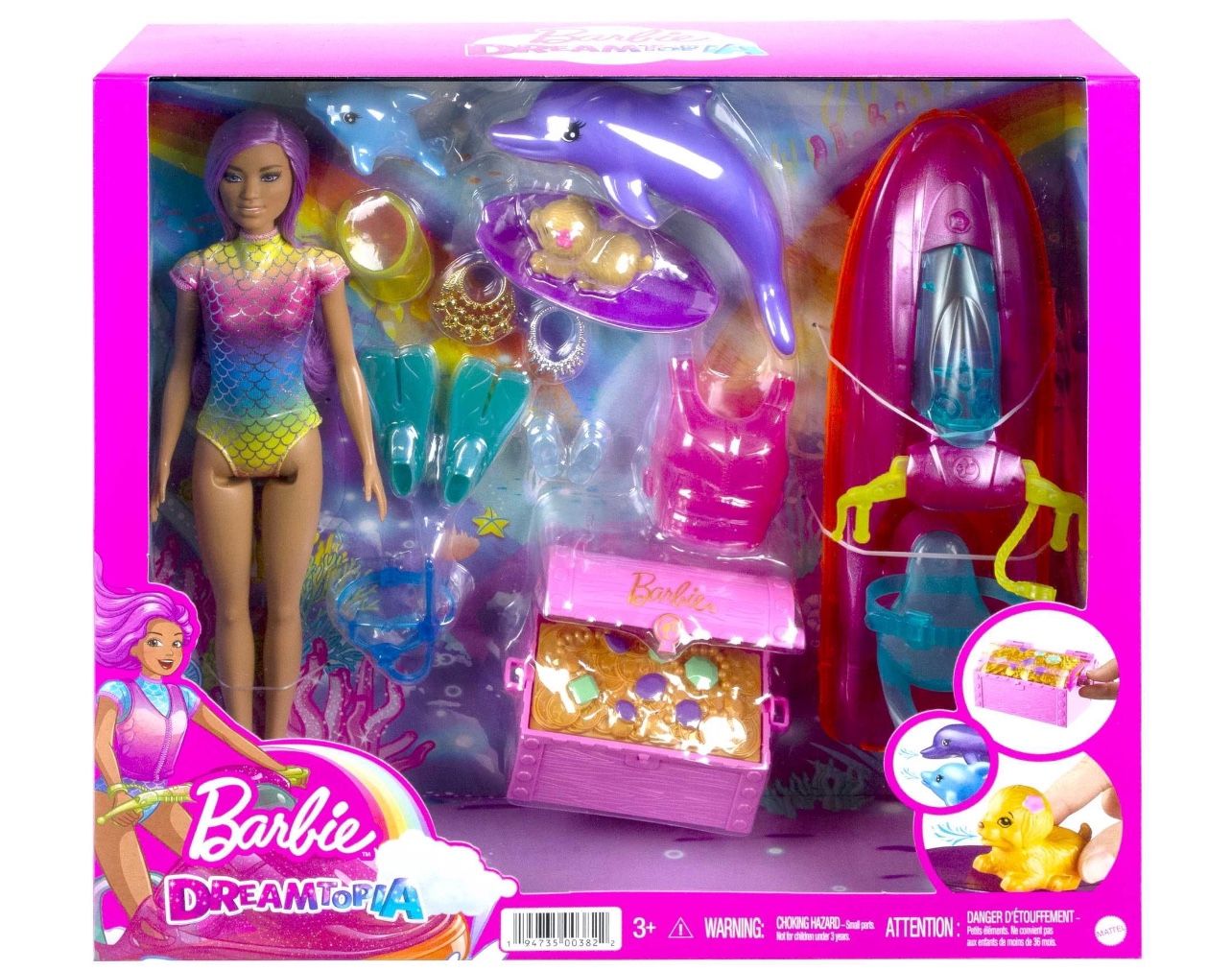 Brand new Barbie Beach Doll with Jet Ski and Water Sport Accessories, Puppy, Dolphins and More