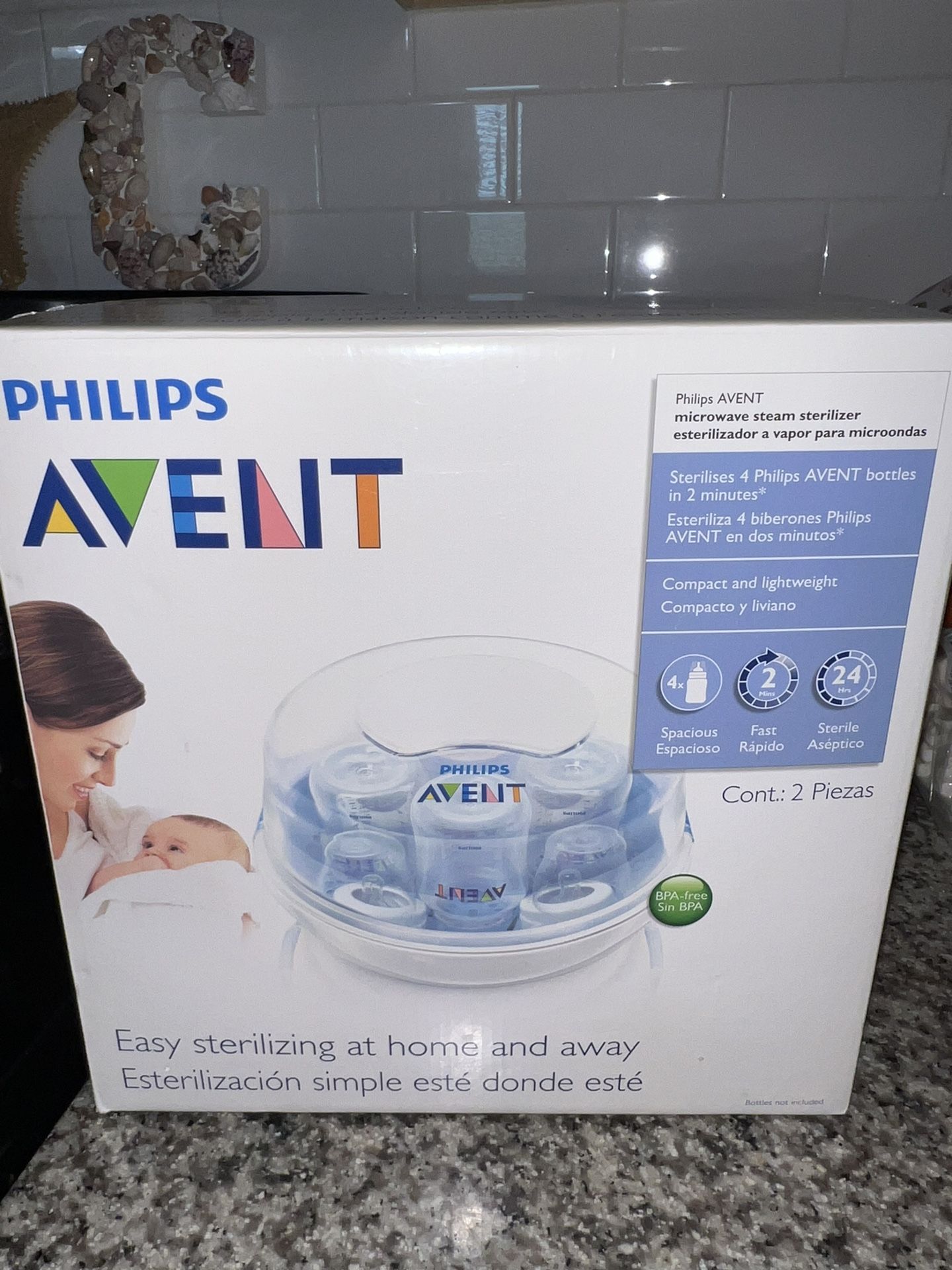 Open box- never used microwaveable bottle sterilizer. Perfect for easy sterilization for bottles and bottle parts.