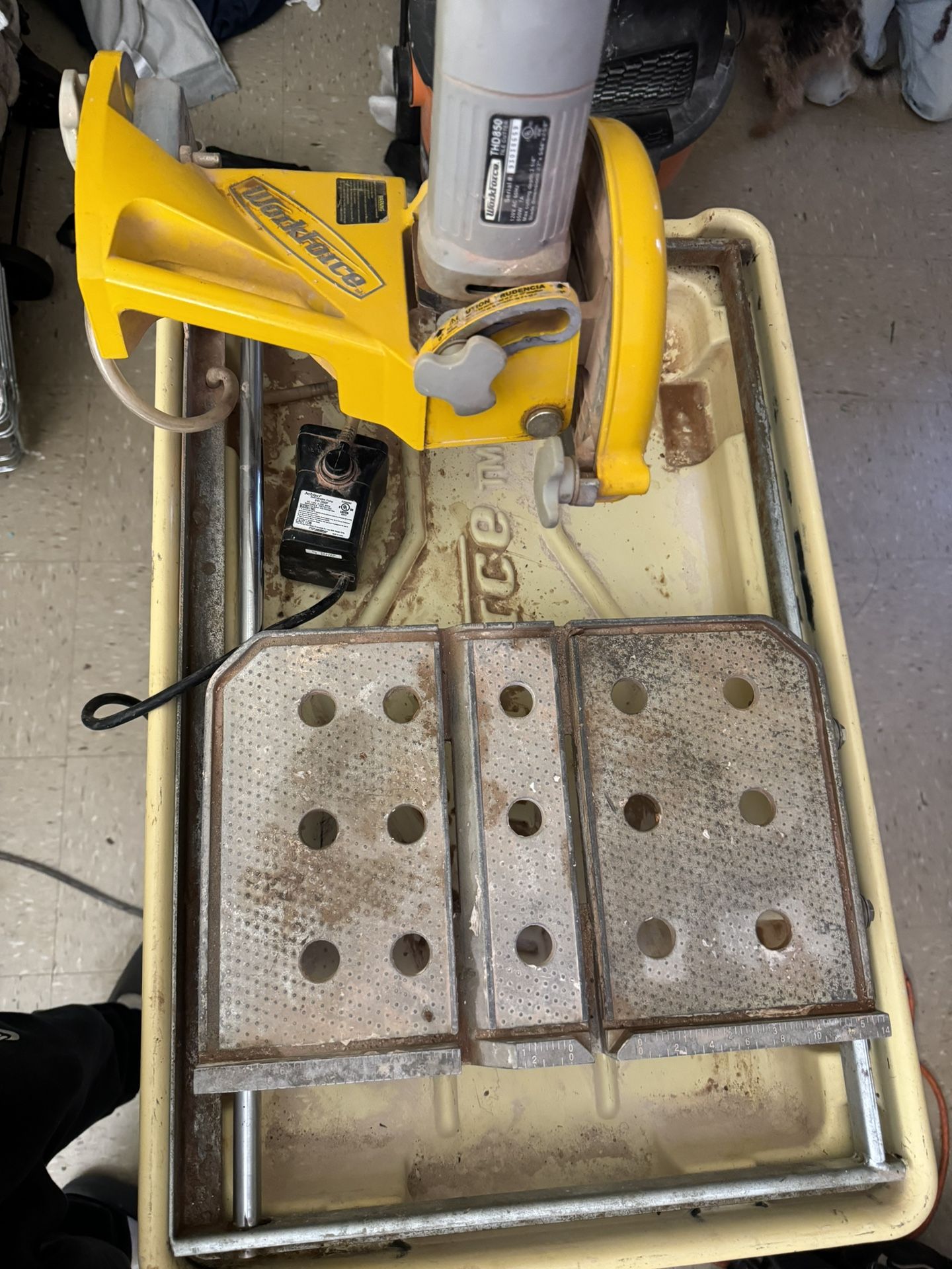 Hi am I sale in a work force tile wet saw with stand and great condition I am no longer in the tile field asked for 200 but willing to negotiate serous buyers only not here to waste my time or yours cash and carry