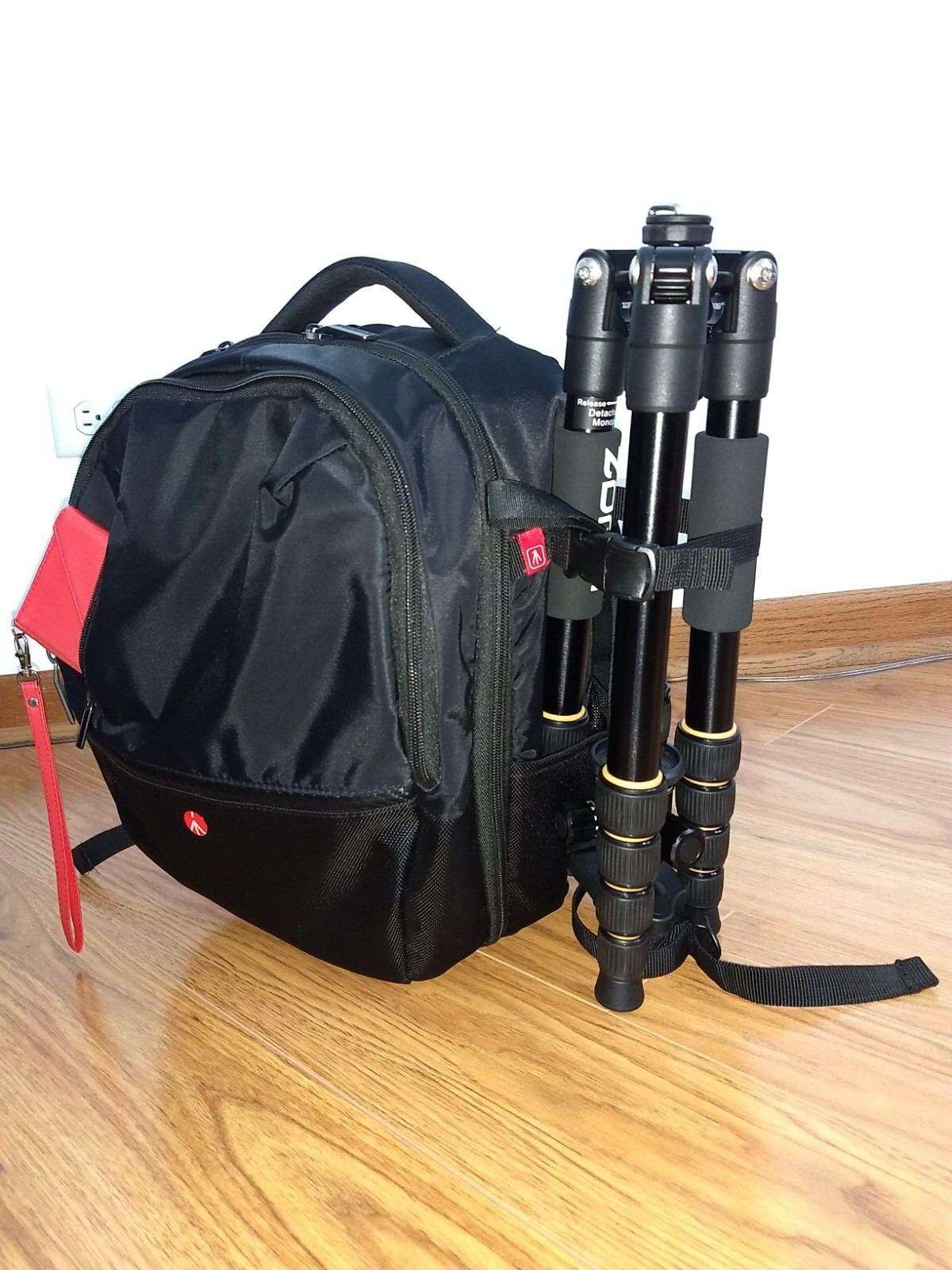 Camera backpack no longer in use. Used once. It is 17 inches tall, 12 inches wide and 7 inches deep. No tears. Comes with rain cover that you can put on bag.