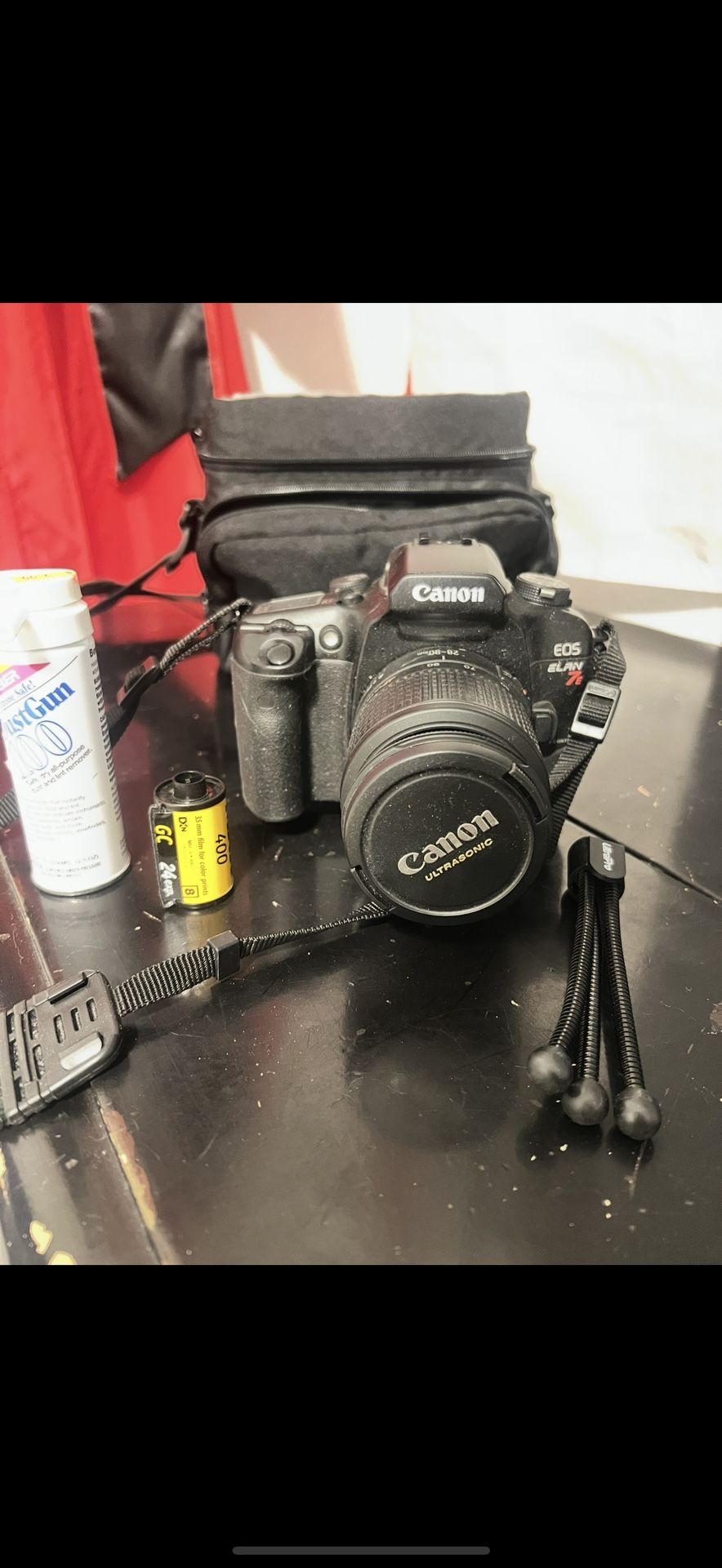 Iconic Canon 35mm film camera prized for its eye controlled focus (ECF), quiet operation and full EF lens compatibility. In very good condition considering it’s from the 2000s era comes with everything in photos including carrying bag.