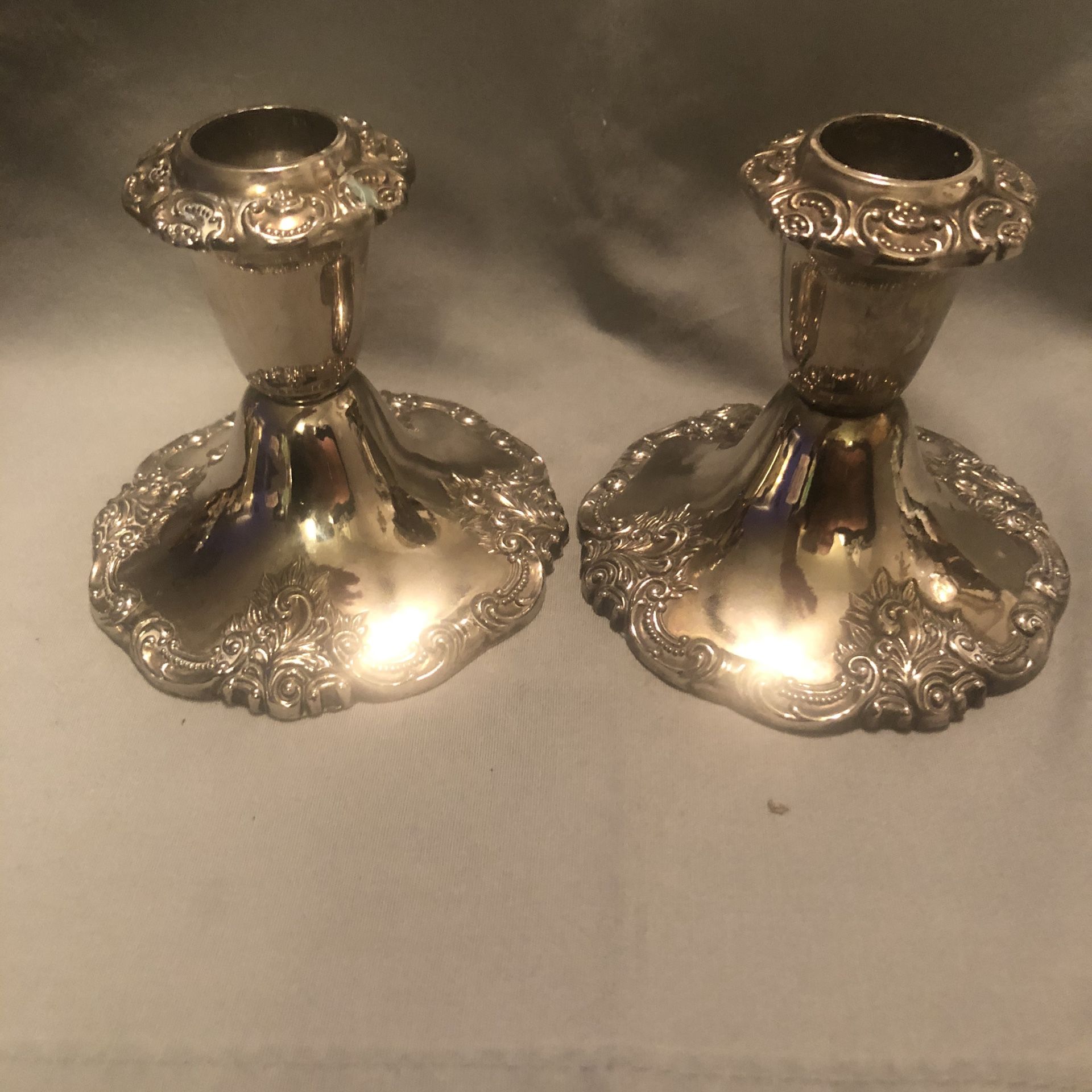 About 3 inches tall l, no marking on bottom. See pictures for blemish on one candlestick.