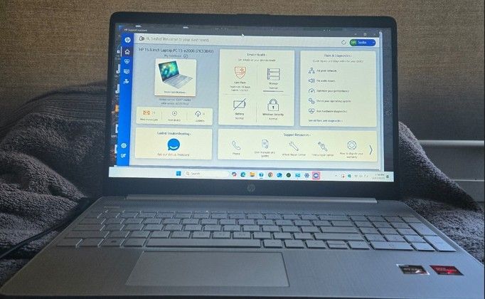 HP 15.6 inch laptop. Model 2K3D8AV. AMD Ryzen 3 5300U with Radeon graphics. 16 GB Ram. Windows 11 Home. 238 GB storage. Charger, full size mouse and keyboard included!