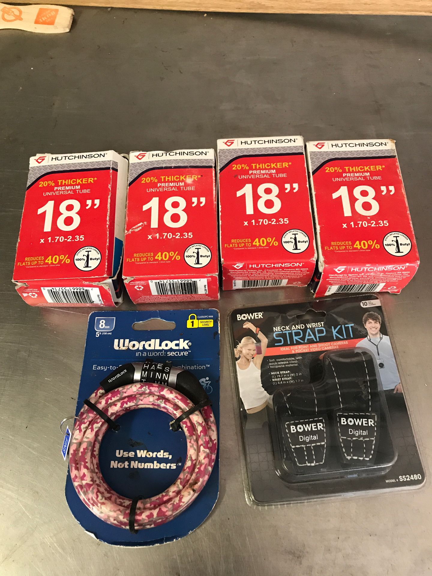 4 Bikes tube . 1 lock . 1 neck and wrist strap kit asking $8