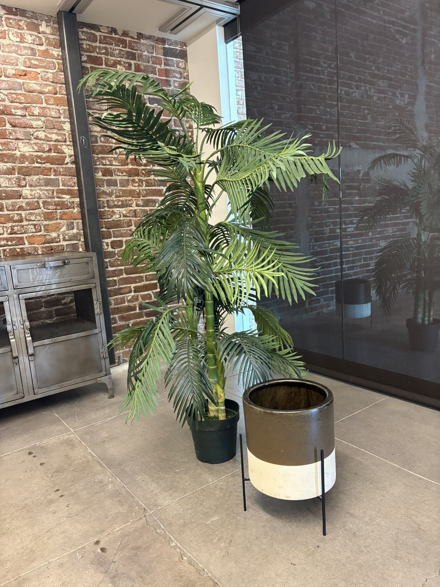 Faux/Decorative Areca Palm Tree (not a real tree) Comes with ceramic pot and metal stand Just over 5 ft Have two Need gone ASAP $65 each Or $100 for both