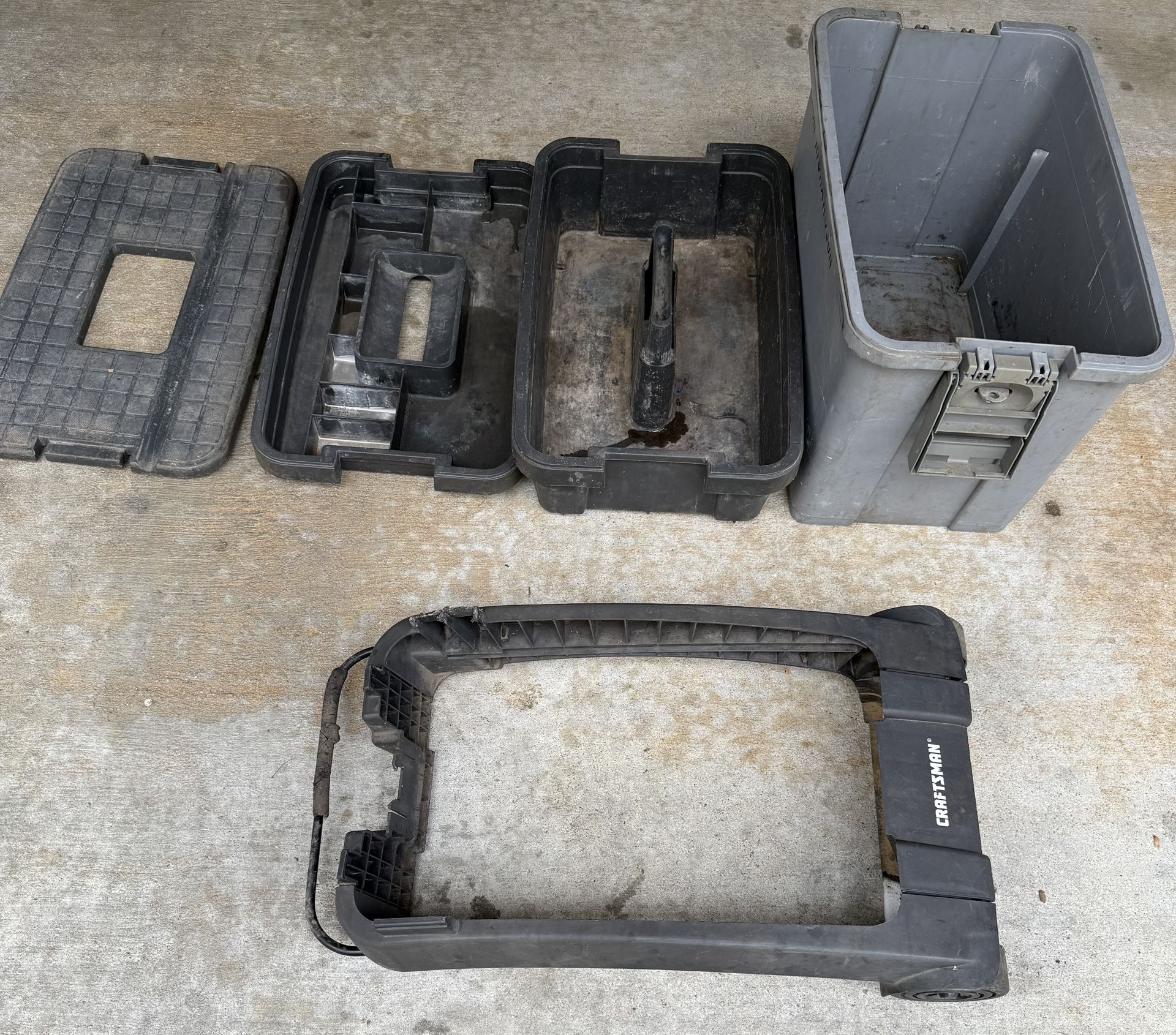 Vintage toolbox, used alot over the years, wheels still work as they should. Could use a good cleaning, but it’s a toolbox that’s what it’s used for. Only thing is one side clamp is missing.