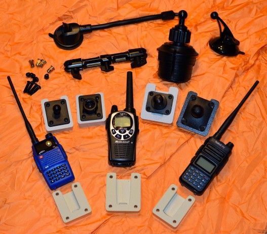 I call it...RadioPod! Introducing a radio-specific handheld radio mount to securely hold your 2 way radio in a vehicle and elsewhere. The design fits specific radio clips, currently modeled on 5 (and counting) of the most popular 2-way handheld radios used today, however, I have my sights on other radio makes and models to include depending on demand and interest. Each radio mount is CNC milled from 3/4" high grade industrial textured HDPE which makes them extremely durable. The mounts are currently available in 4 colors; Black, Tan, Light Gray, and Green, however, I have access to many more colors if desired and plan to offer them all down the line. I will be offering a LIFETIME warranty on the original purchased HDPE radio mount; the part I am CNC milling, and 1 year warranty on the attachment accessories. I am willing to make custom mounts upon request, I can do side by side mounts if you have a handheld microphone that you like to use with your radio or if you have a radio that isn't one of the 3 I have done so far, shoot me a message! Details and prices below... Radios currently supported: Midland GTX1000G Rugged Radio V3 Radioddity GM-30 Baofeng UV-5R Baofeng BF-F8HP Rugged Radio GMR2 Mounting options and pricing*: Through bolt - $20 - 2 choices here; either rivet nuts or acorn nuts depending on your install needs. 17mm ball - $25 17mm socket - $25 17mm socket + suction cup mount - $30 20mm ball (Bulletpoint style) - $30 1"/25mm ball (RAM mount style) - $25 Depending on interest and demand I can offer cup holder mounts and other attachment points but they can get rather expensive for those hardware pieces. Replacement parts and mounts can be purchased (HDPE mount with no hardware is $15) Shipping via UPS available starting at $9. I have been testing these a bit and they hold up really well, not much rattle and they stay put, click in easy, and come out with a push of the radio clip as intended. One thing is for certain, the bolt mount is the most secure and also the cheapest option....if you flip your vehicle and your radio is in that mount you will know where to reach to call for help!! If this grows, I will start a website where people can make purchases and get formal, but for now I will be making these to order, so there may be a bit of a lead time (2 weeks tops) to order the little bits and pieces. *radio not included in price
