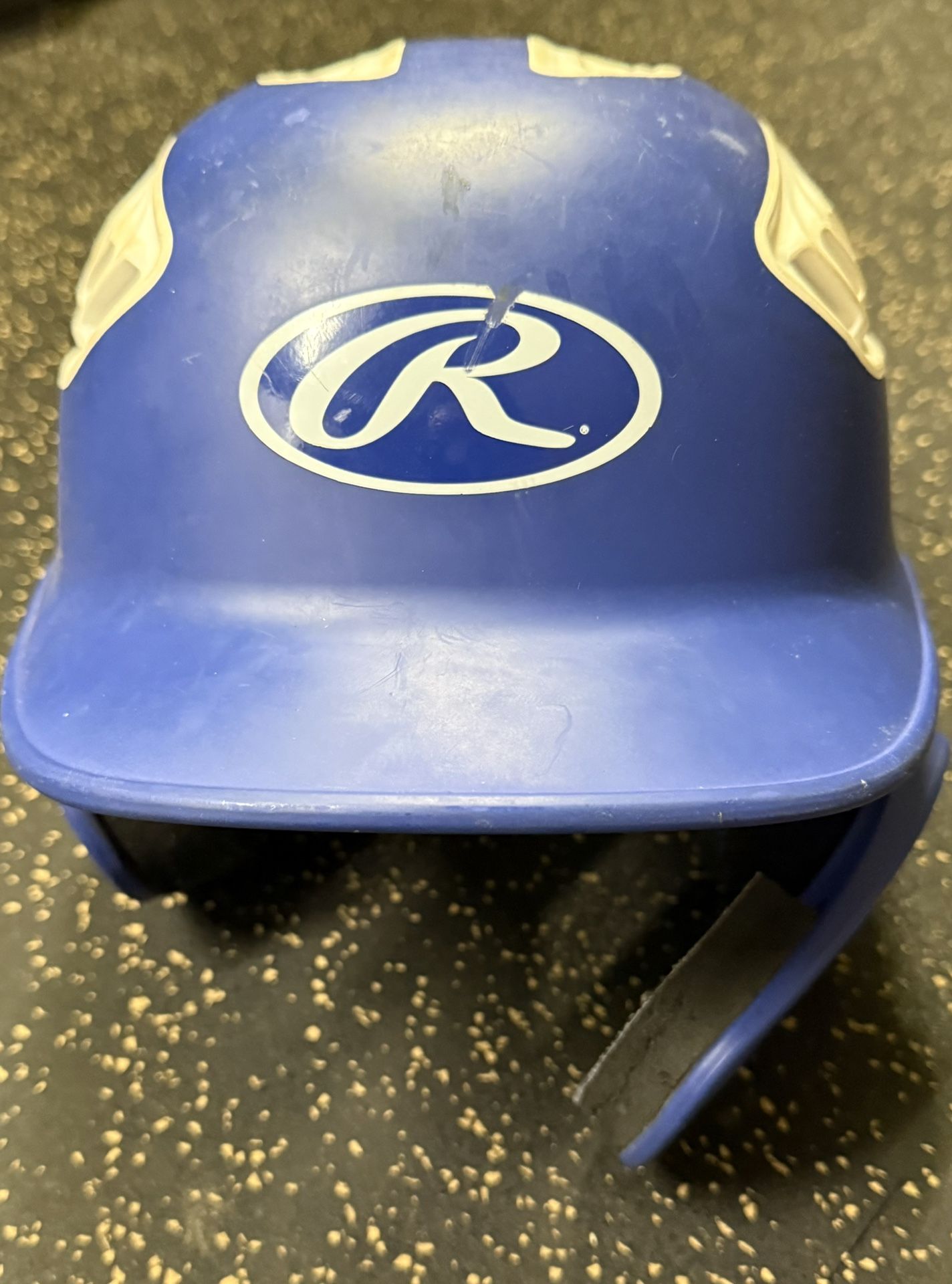 Rawlings Youth baseball helmet with jaw protector. Helmet shows its wear and still has life left. FITS SIZES 6 7/8 - 7 5/8