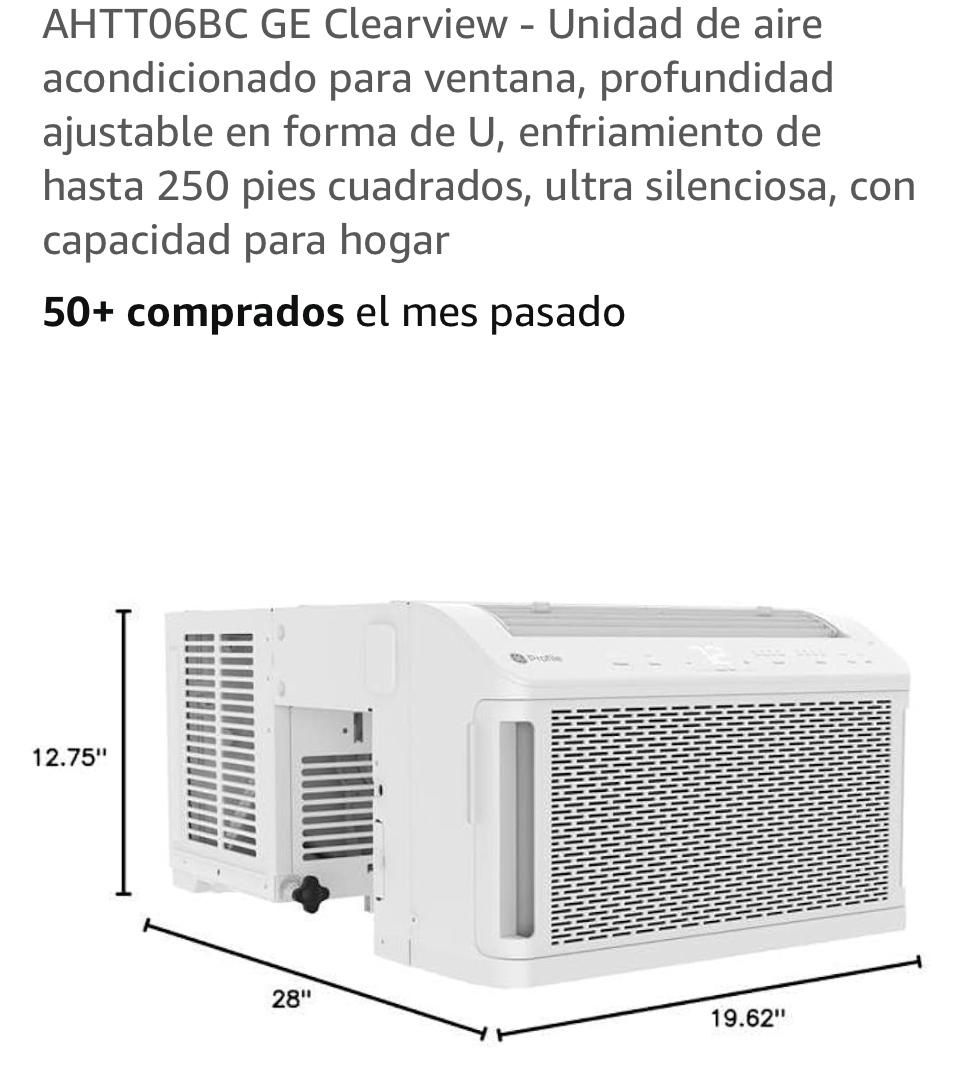 AHTTO6BC GE Clearview - Unidad de aire acondicionado para ventana, profundidad ajustable en forma de U, enfriamiento de hasta 250 pies cuadrados, ultr