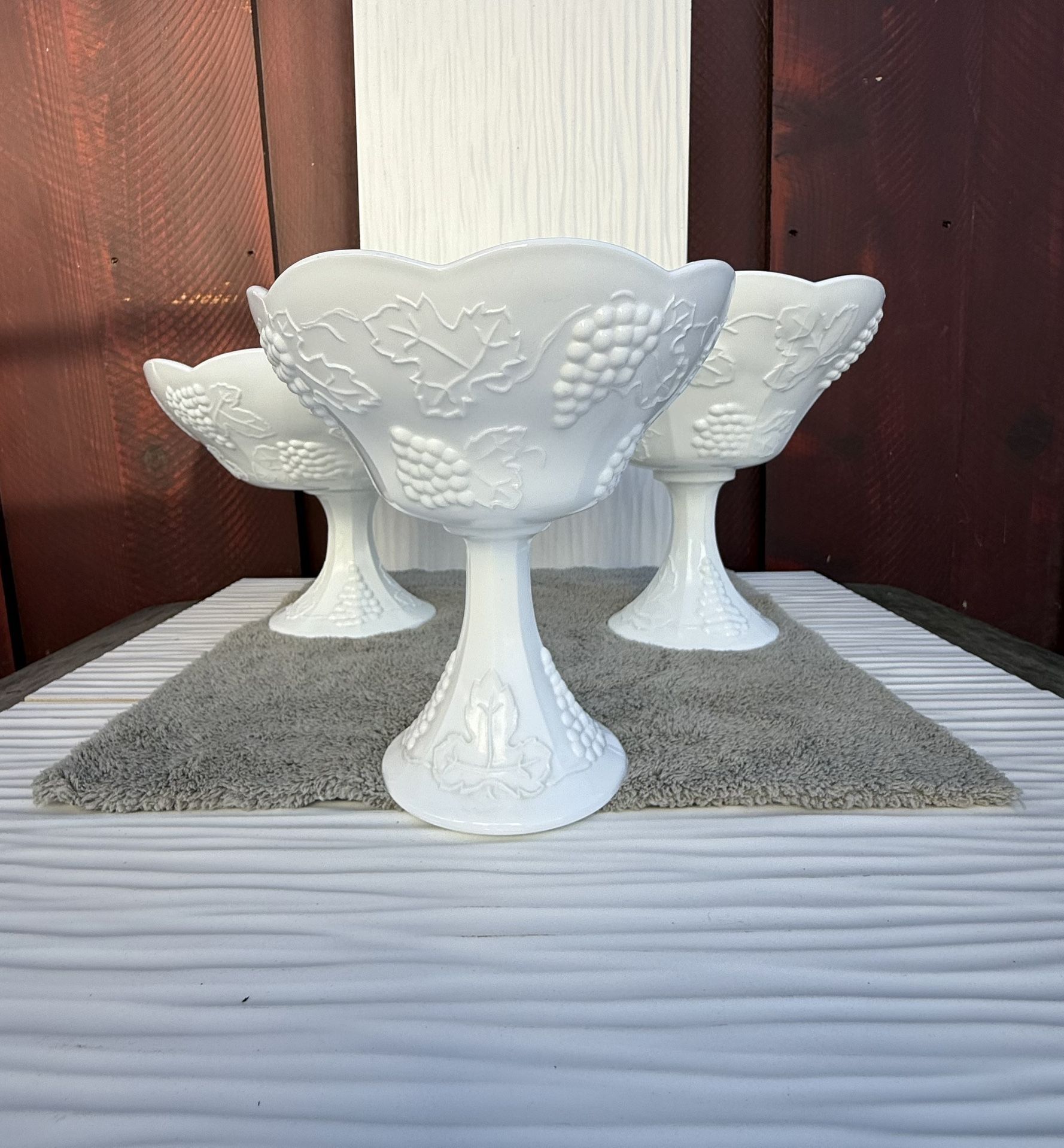 Set of 3 Vintage Indiana Milk Glass Pedestal Harvest Grapes Bowls